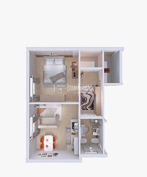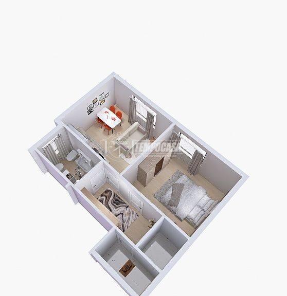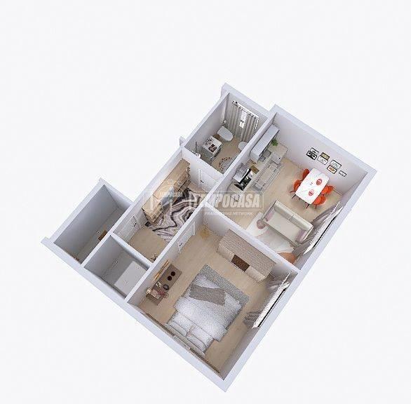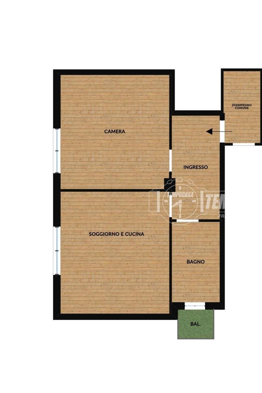 Internamente è composto da un soggiorno con cucina a vista, una camera da letto e un bagno finestrato. È presente anche un balconcino, al quale si può creare accesso diretto con ulteriori lavori.