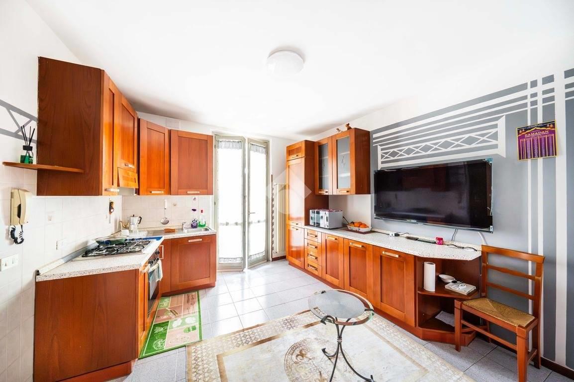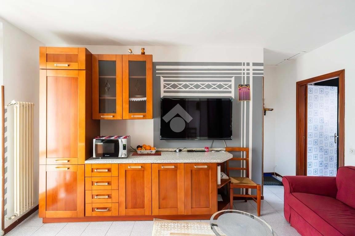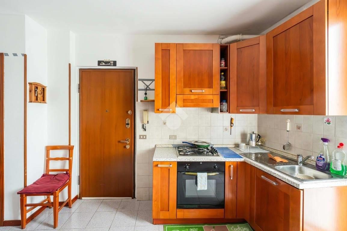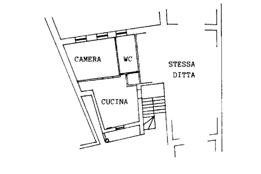 L'immobile è così composto: zona giorno con cucina a vista e balcone che si affaccia el cortile interno. Disimpegno, bagno finestrato e camera matrimoniale.