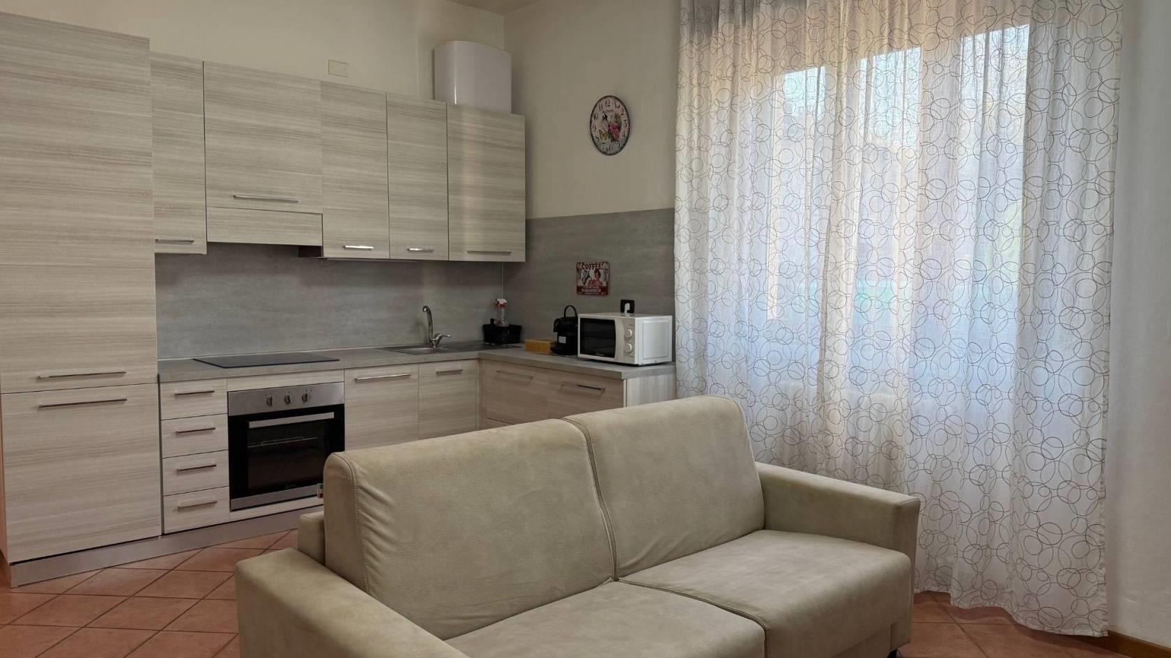 In quartiere servito da mezzi, negozi e supermercati, proponiamo in affitto interessante bilocale posto al piano rialzato, senza ascensore.