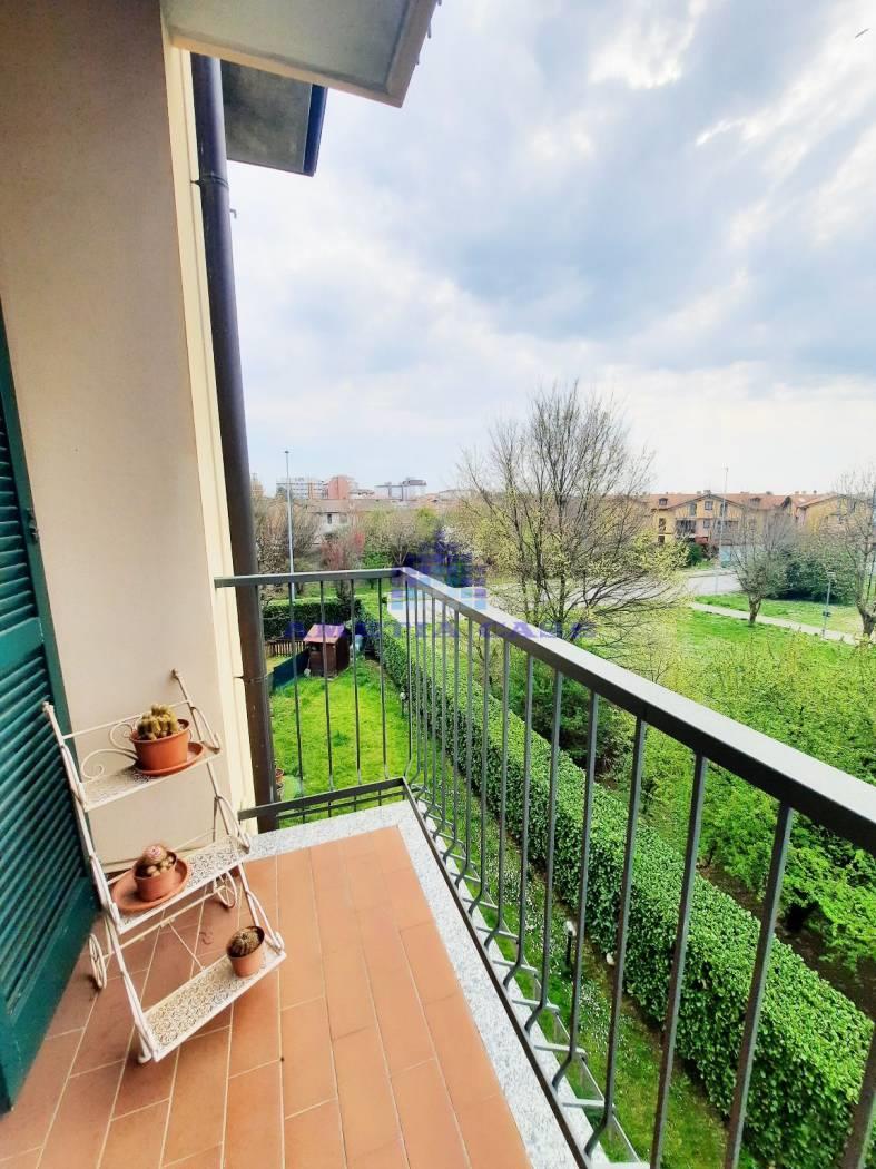 Il disimpegno conduce al bagno con vasca e alla camera matrimoniale con pavimentazione in parquet ed accesso ad un secondo balcone.