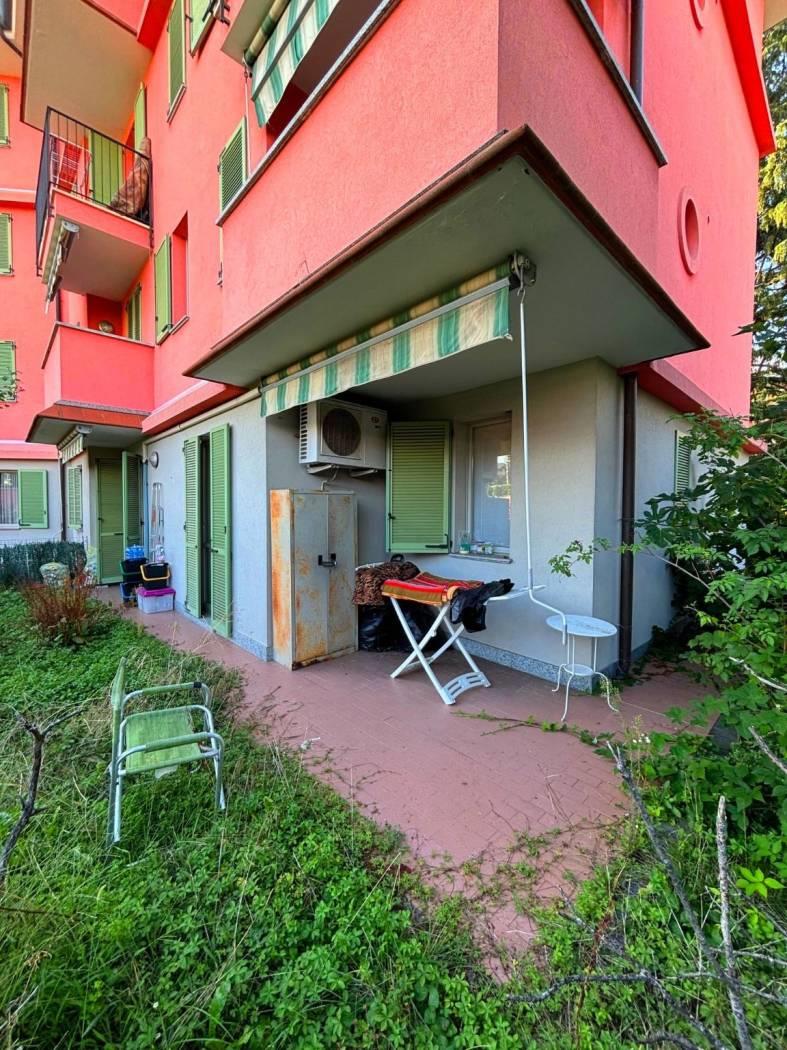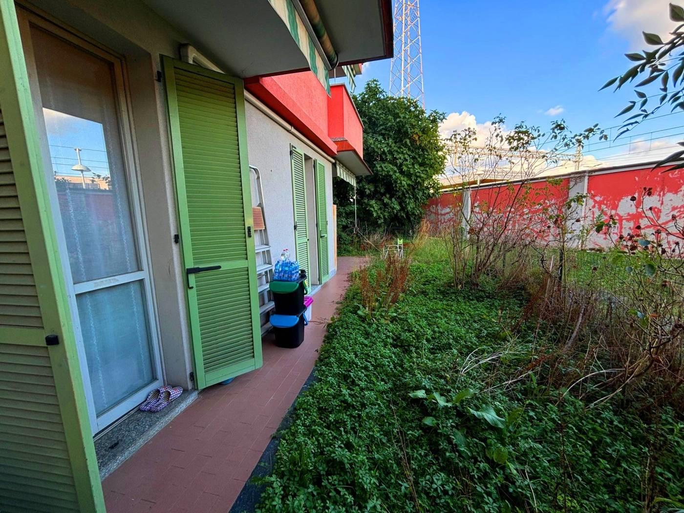 In recente palazzina del 2002 con cappotto termico ed in classe energetica "C" sita a due passi dalla stazione, dal centro e da tutti i principali servizi, proponiamo bilocale al piano terra con giardino di 50 mq composto da ingresso, soggiorno con angolo cottura ed uscita sul portico e giardino, camera sempre con porta finestra ed uscita sul giardino, bagno finestrato con doccia.
