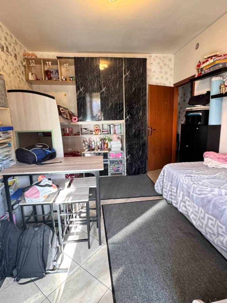All'interno, un luminoso soggiorno con zona cottura separata, servito anche da balcone, disimpegno, bagno finestrato con doccia, ampia camera matrimoniale con balcone.