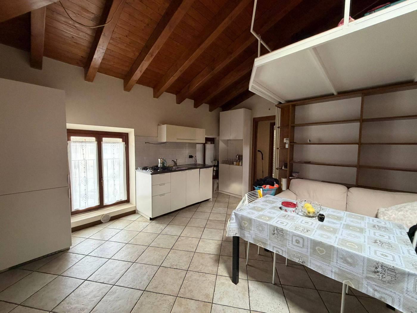 l'appartamento è composto da soggiorno con cucina a vista con soppalco; disimpegno, bagno spazioso con box doccia e camera da letto