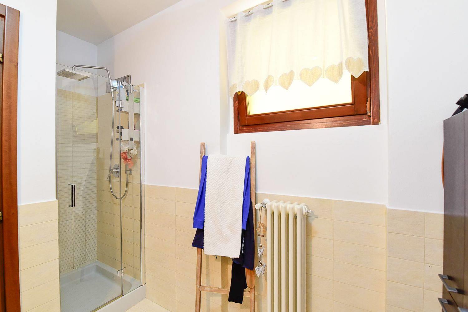 Continuando su questo livello troviamo in fine l'ampia camera da letto matrimoniale ed il bagno che gode oggi della presenza di un comodo box doccia.