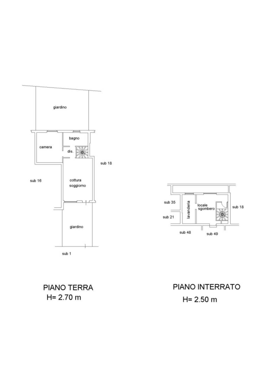 Al piano terra troviamo l’appartamento principale, composto da una luminosa zona giorno con soggiorno e cucina a vista, facilmente arredabile e con affaccio diretto sul giardino privato, una camera da letto matrimoniale e un bagno. Gli ambienti risultano ben proporzionati e pensati per una vivibilità quotidiana comoda e funzionale.