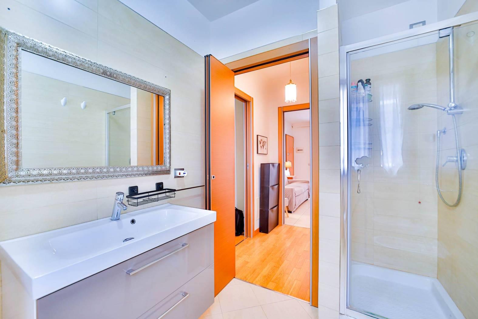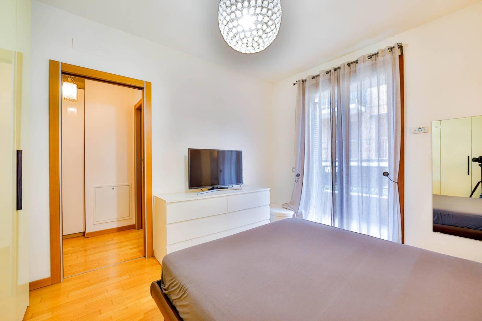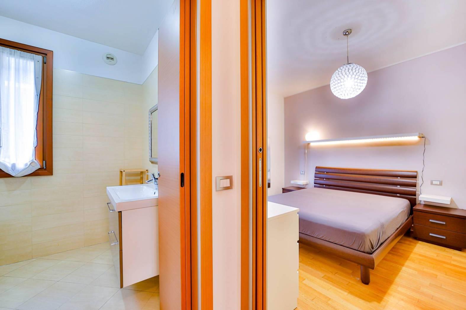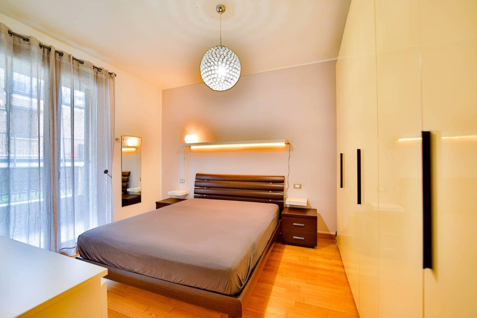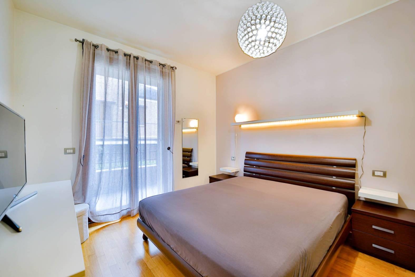 Un comodo disimpegno conduce alla zona notte composta da camera matrimoniale con balcone e bagno finestrato, rifinito con gusto e funzionalità.