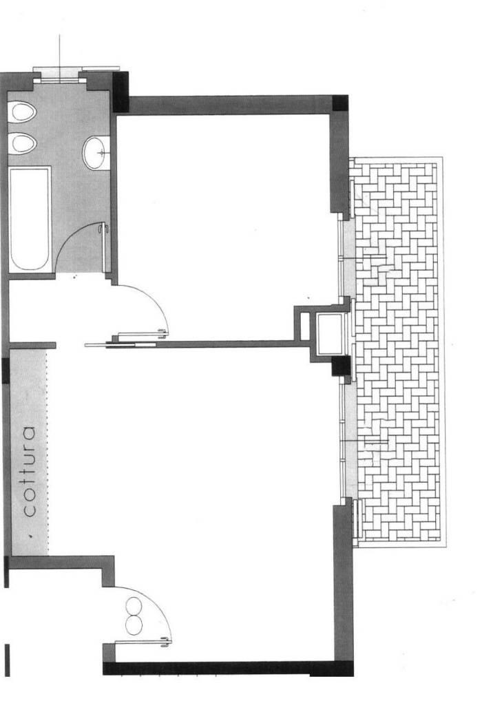 Dal disimpegno si accede alla camera da letto, anch'essa con accesso al balcone, e al bagno con vasca.