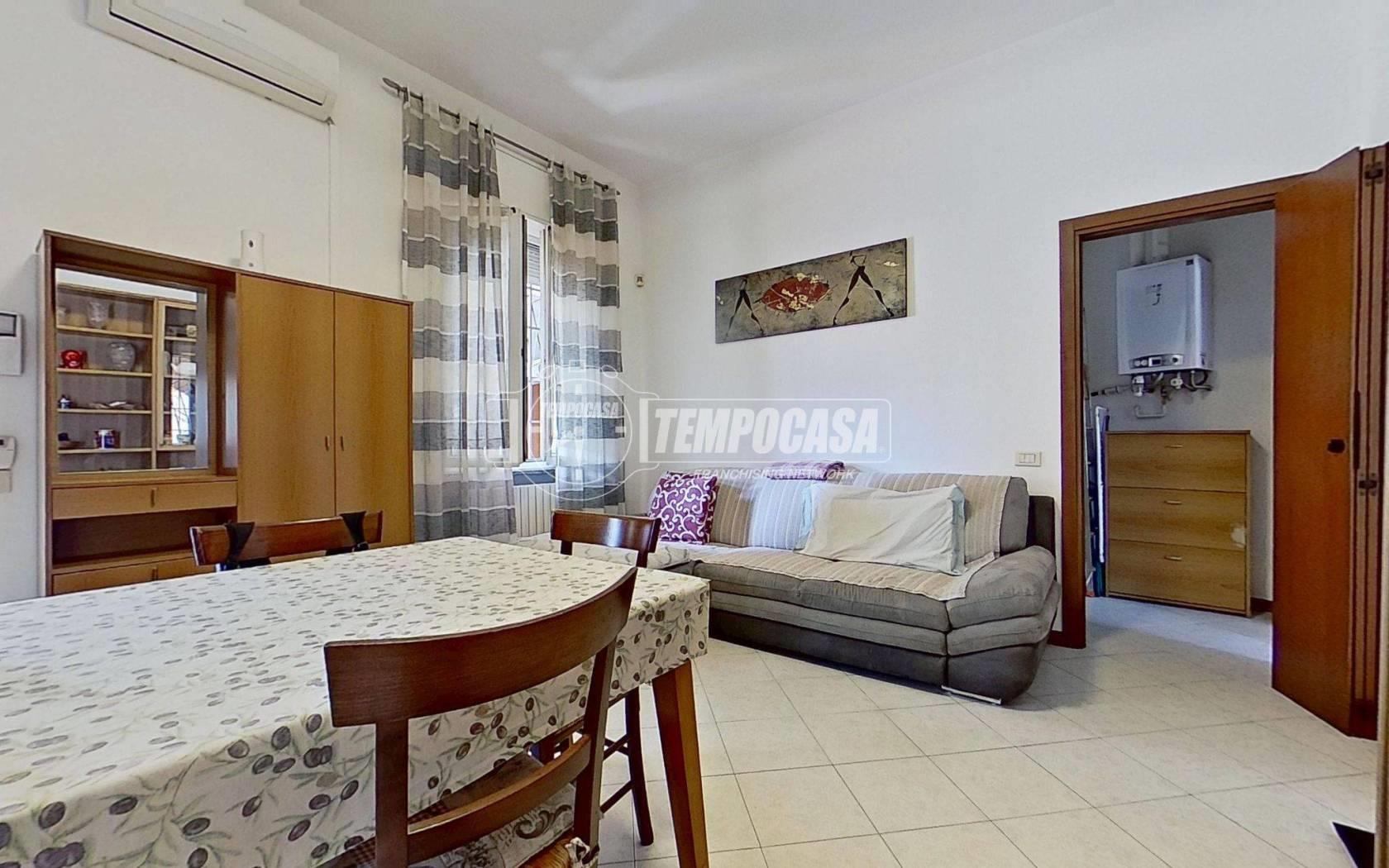 L'appartamento posto al primo piano in un contesto di corte è così disposto: ingresso su ampia zona giorno, luminosa cucina abitabile, disimpegno che conduce alla zona notte dove troviamo il bagno finestrato con box doccia e la spaziosa camera padronale.