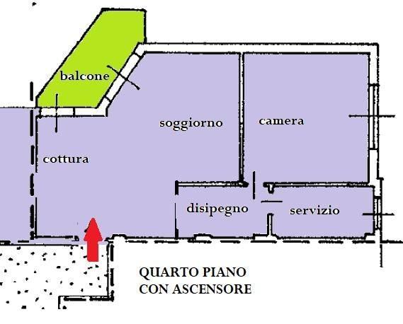 In posizione comoda con tutti i servizi e la stazione ferroviaria, proponiamo in vendita appartamento situato al 4° piano servito da ascensore, all'interno di una palazzina ben tenuta.