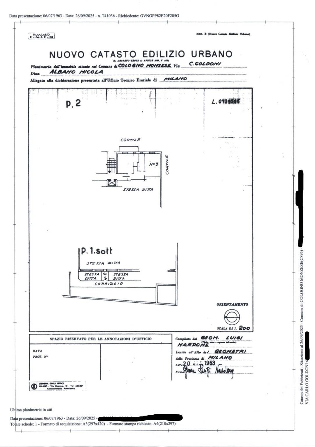 L'immobile posto al secondo piano di un palazzo di sei, servito di ascensore. L'appartamento è così composto: ingresso, soggiorno, cucinotto, camera, bagno, ripostiglio, balcone e cantina.