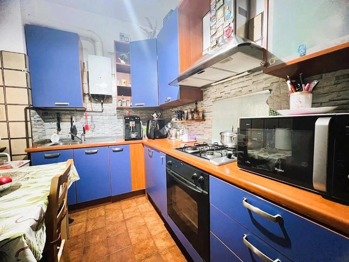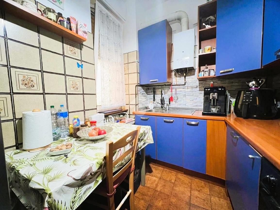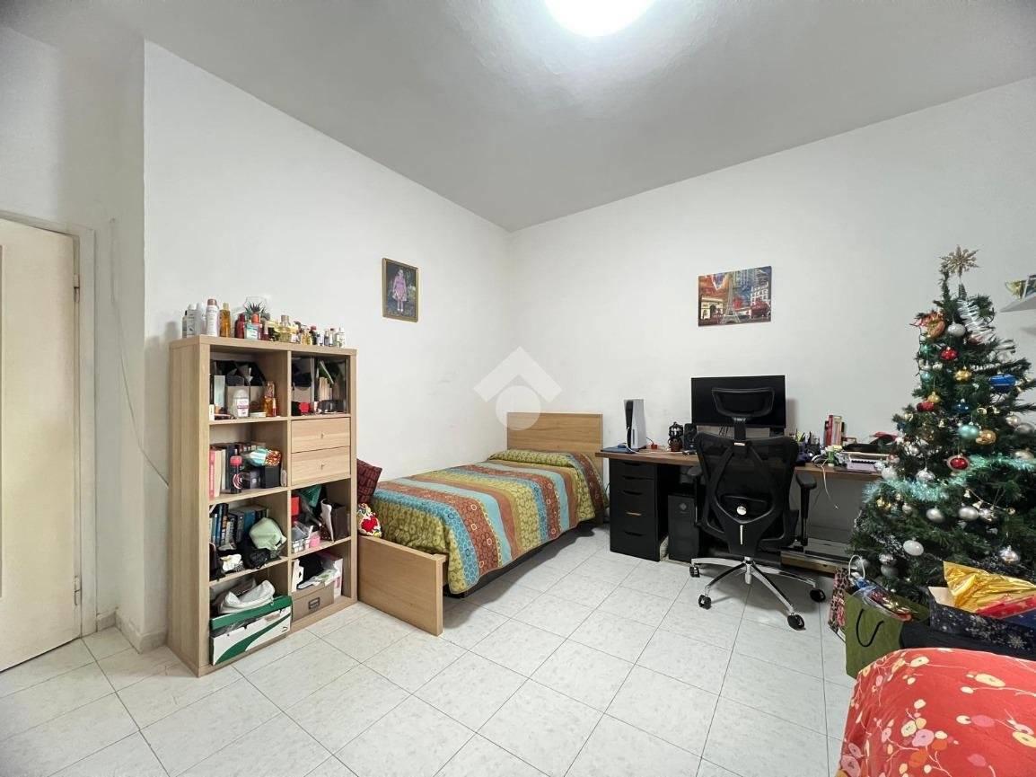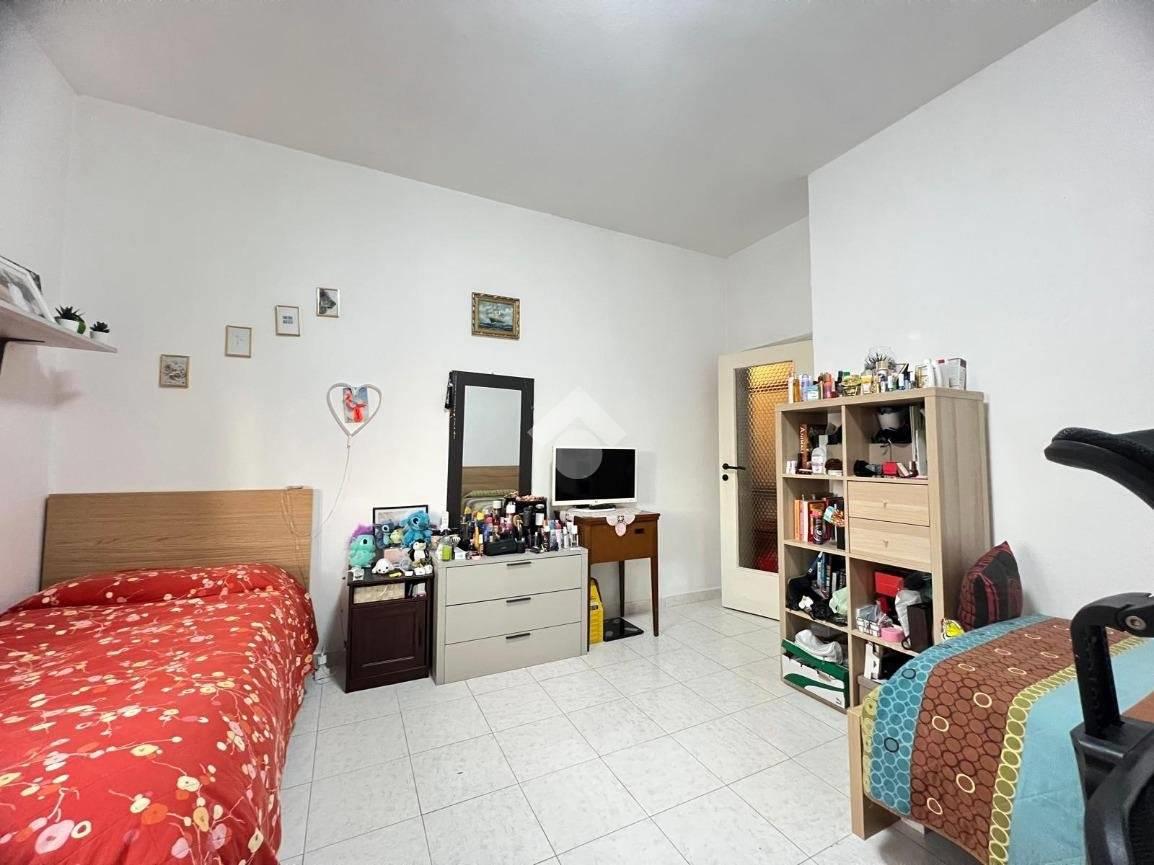 L'appartamento si compone da ampio soggiorno, cucina separata ed abitabile, una camera da letto servita da balcone privato e un servizio finestrato con vasca (attualmente il soggiorno è utilizzato come camera da letto e viceversa).