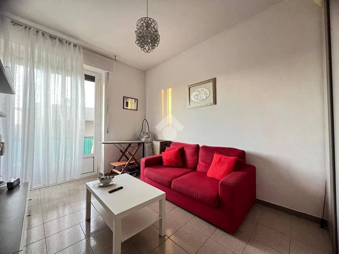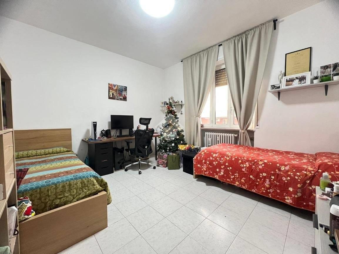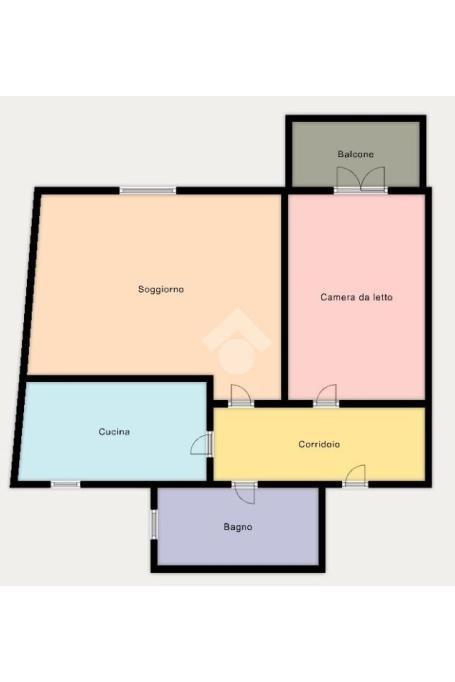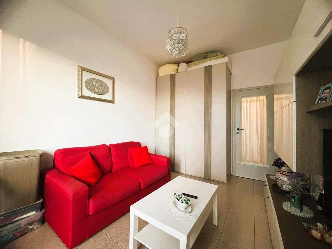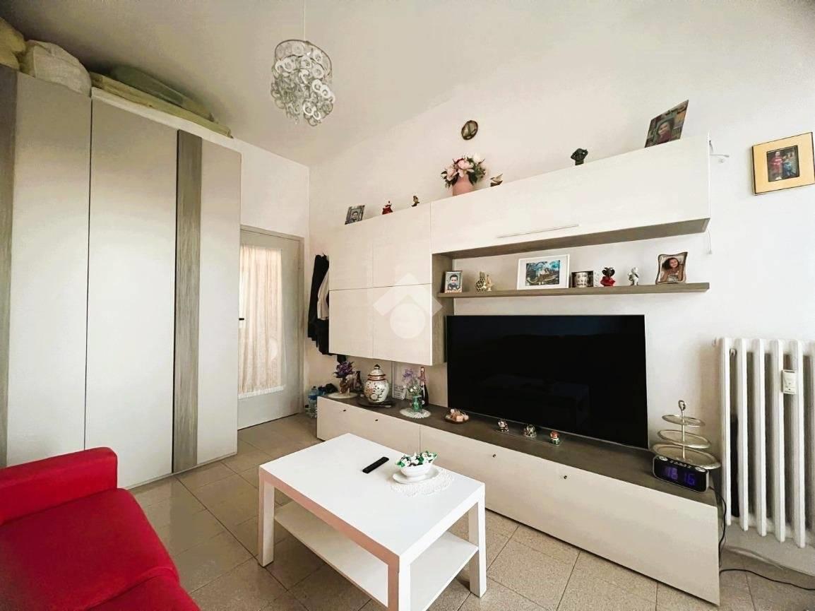 L'appartamento si compone da ampio soggiorno, cucina separata ed abitabile, una camera da letto servita da balcone privato e un servizio finestrato con vasca (attualmente il soggiorno è utilizzato come camera da letto e viceversa).