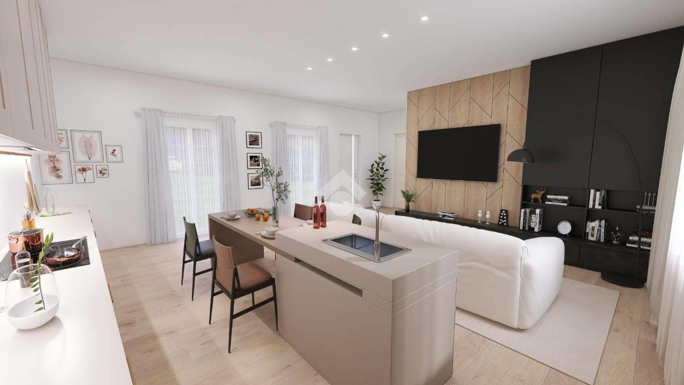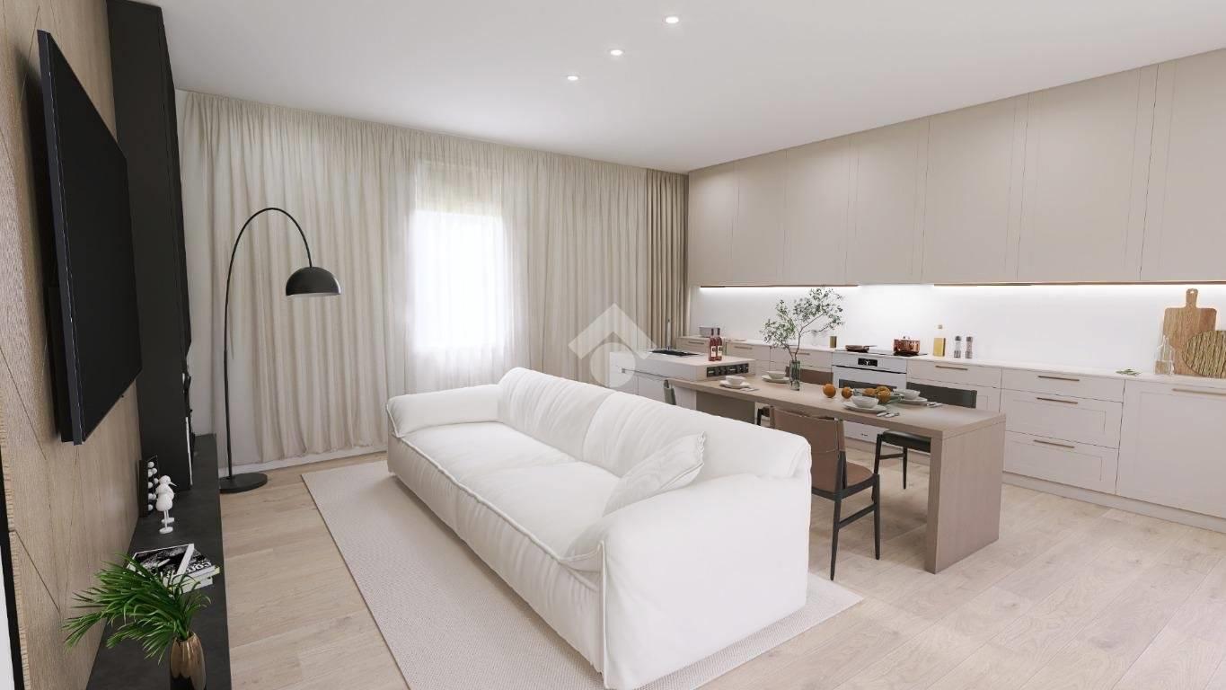 APP. N.4: L'appartamento si svilupperà su unico livello con ingresso indipendente dal ballatoio che offre l'accesso direttamente nella zona giorno con cucina open space e doppia esposizione. Il disimpegno accompagnerà nella zona notte che sarà composta da una camera da letto e un servizio finestrato con doccia.