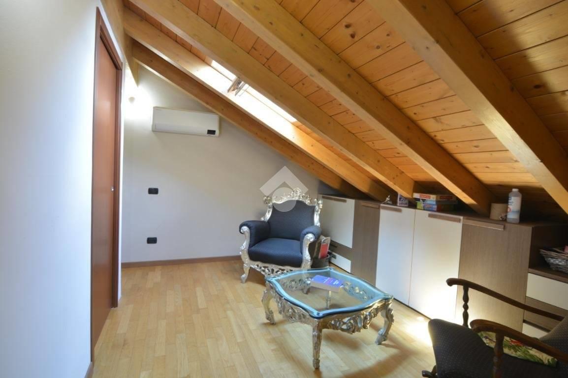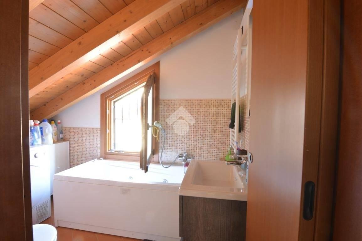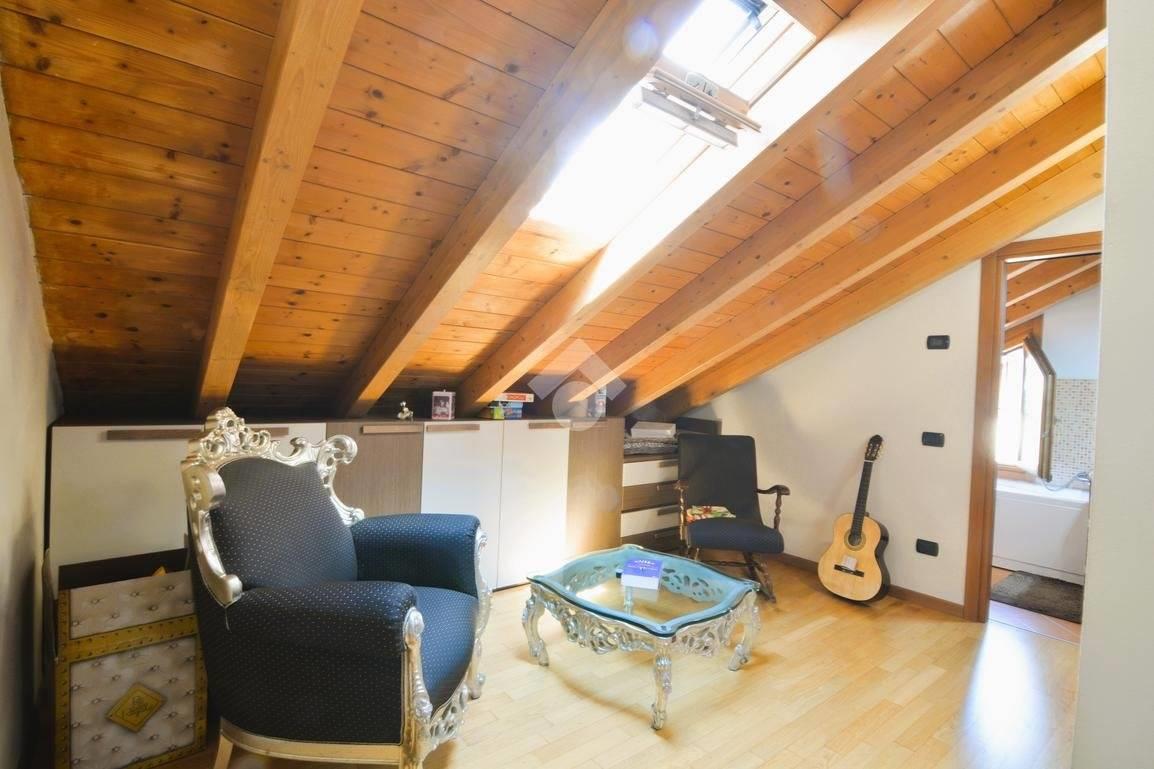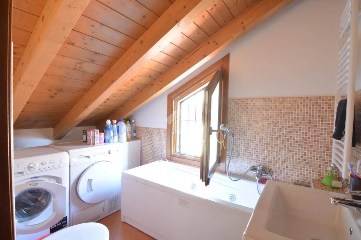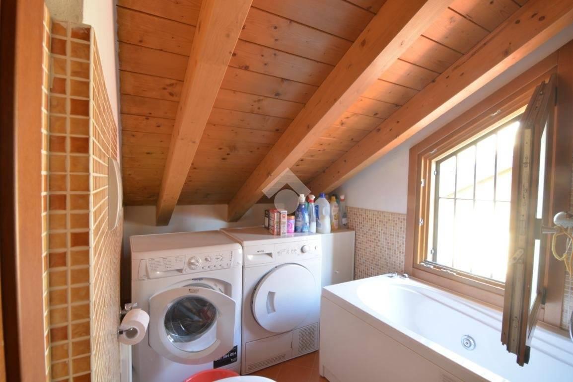 La scala interna conduce al piano superiore il quale ospita due ambienti caratterizzati dalla presenza di travi a vista e lucernari. Anche questo piano è dotato di un servizio con vasca adibito a lavanderia. I locali possono essere utilizzati come zona studio/hobbie oppure come ulteriore camera da letto.