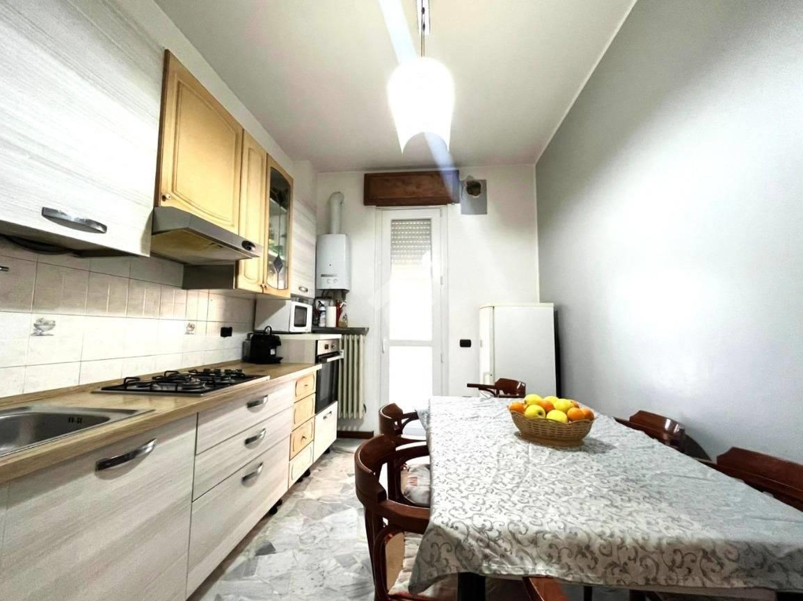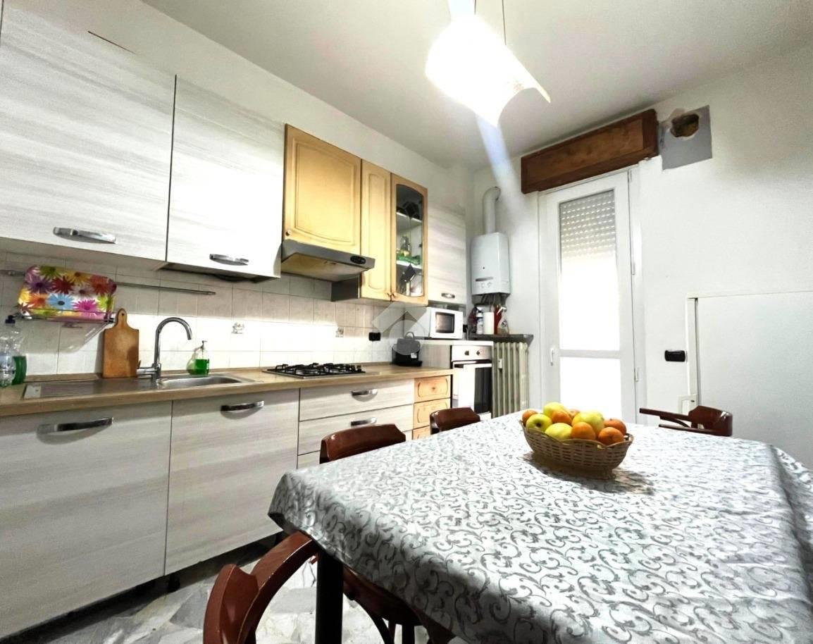 Dall'ingresso si accede alla cucina abitabile con accesso diretto al balcone che si estende anche verso la zona giorno, ampia e ideale per chi ama gli spazi funzionali e ben organizzati.