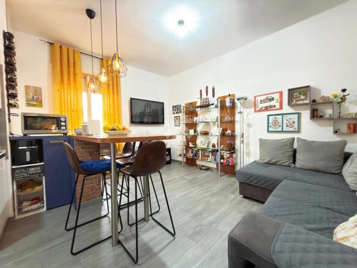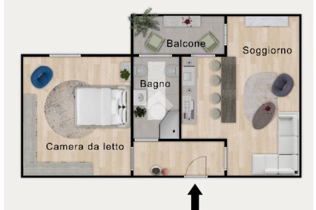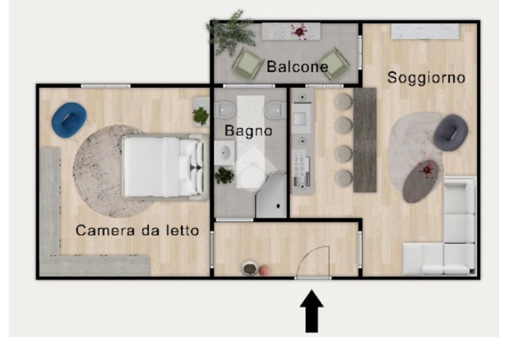 L’abitazione, di generosa metratura pari a circa 60 mq, si apre su una zona giorno luminosa con cucina a vista e soggiorno in ambiente open-space, pensato per vivere al meglio gli spazi. La zona notte è composta da un’ampia camera matrimoniale, mentre il bagno finestrato con box doccia completa la disposizione interna. Un balcone accessibile dalla zona giorno dona ulteriore sfogo esterno e una cantina al piano interrato offre un pratico spazio di deposito.