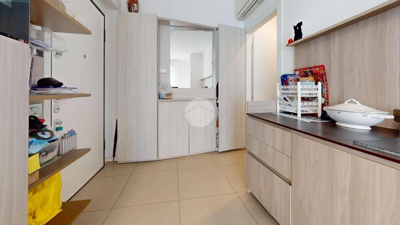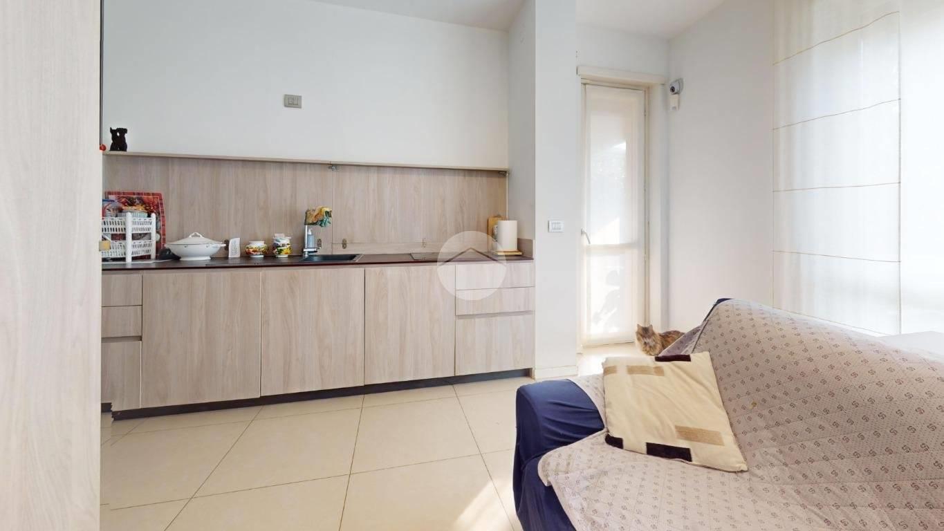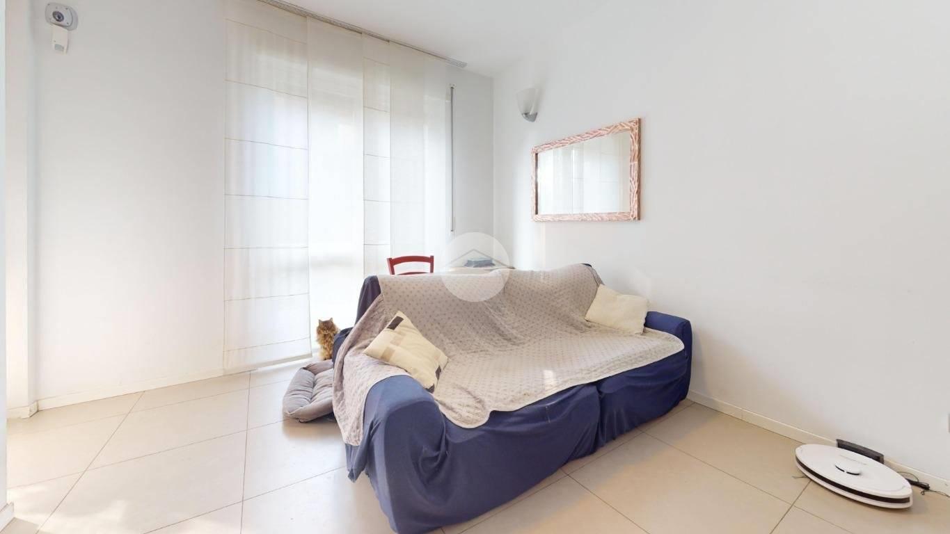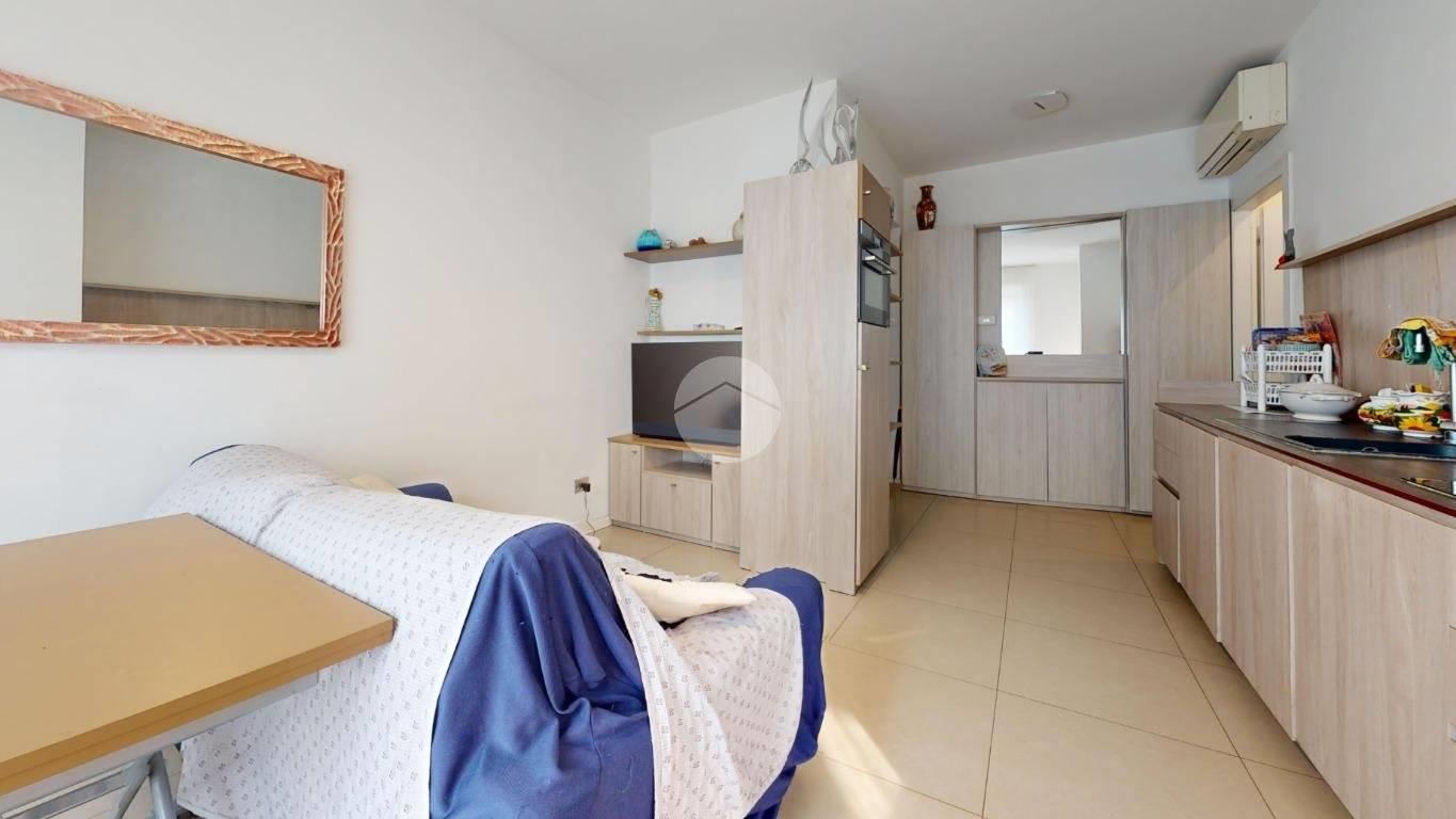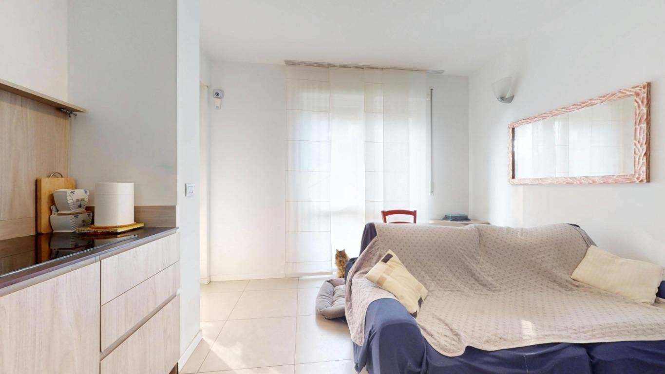 L’ingresso apre sulla zona giorno con cucina a vista, un ambiente pratico e luminoso, perfetto per vivere la casa tutti i giorni e per ospitare. La camera matrimoniale è ampia, ben sfruttabile anche con armadiatura importante. Il bagno è finestrato e completo di box doccia, quindi arioso e funzionale.