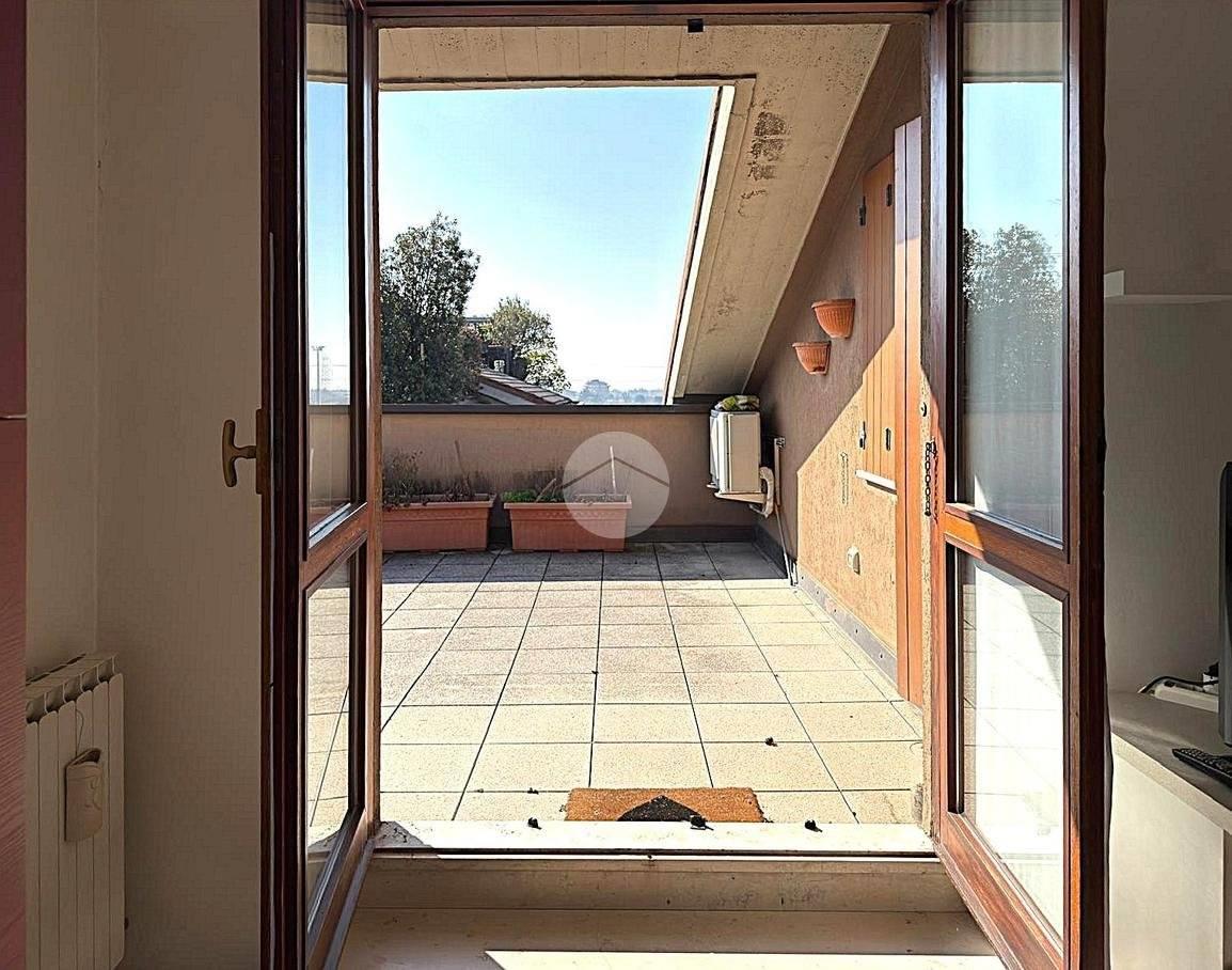 L’appartamento si apre su un luminoso soggiorno con accesso diretto al terrazzo, ideale per momenti di relax all’aperto. Attraverso il disimpegno si accede alla zona notte, composta da camera da letto, comoda area lavanderia adiacente e bagno finestrato.