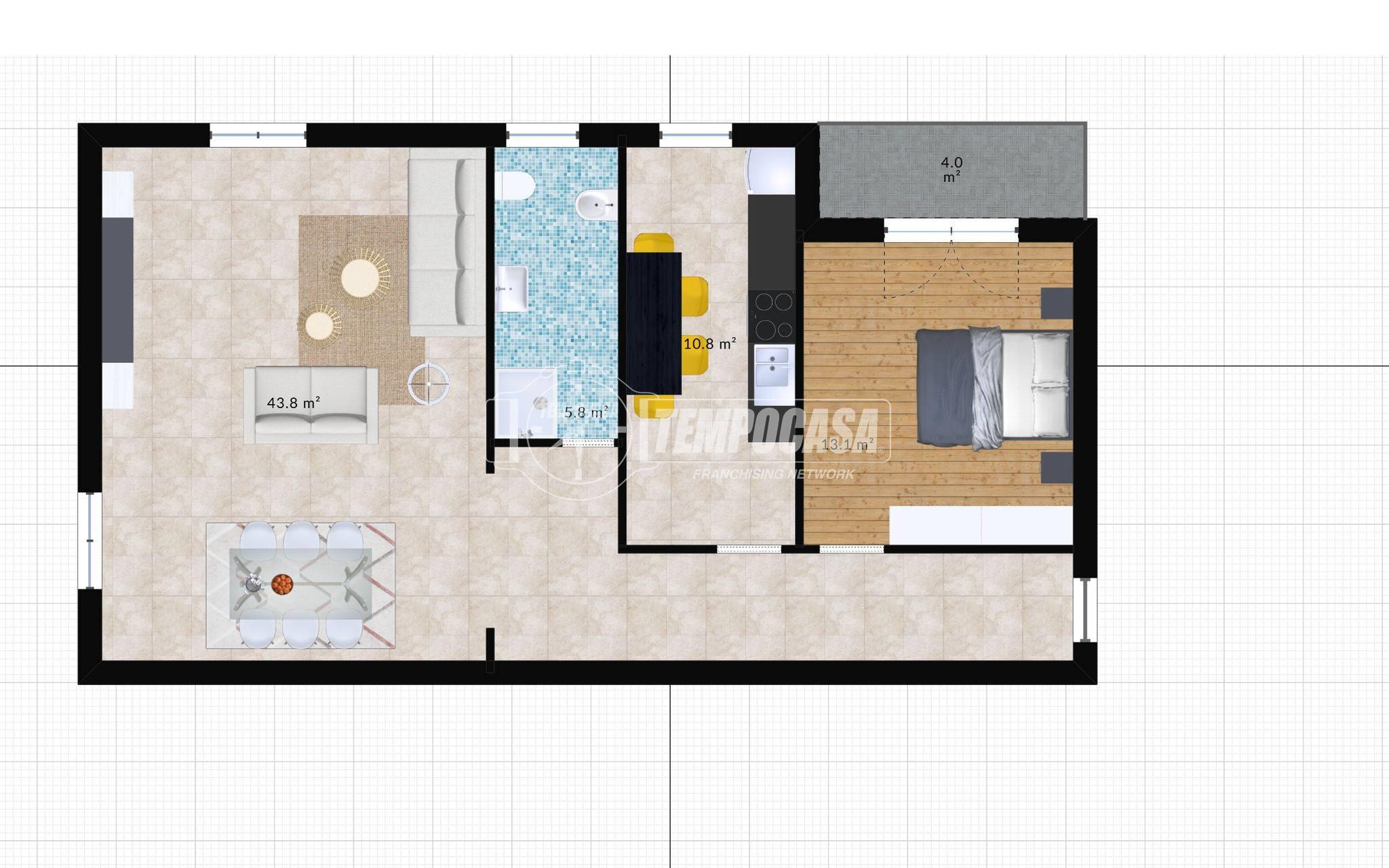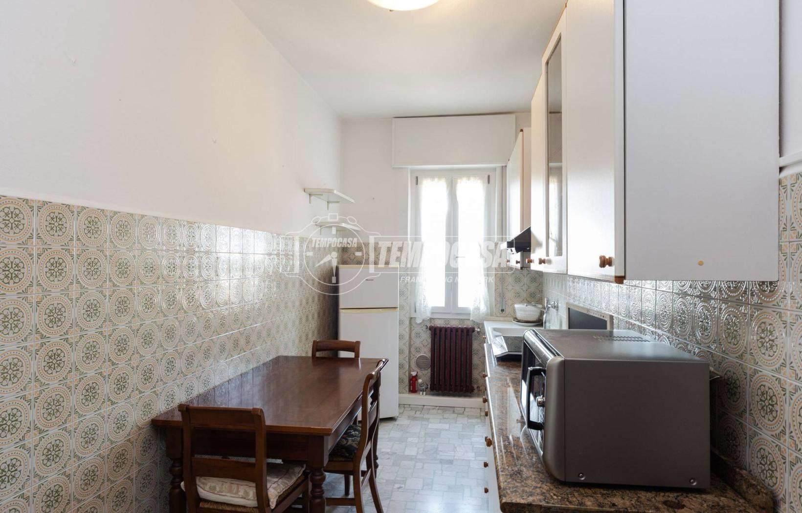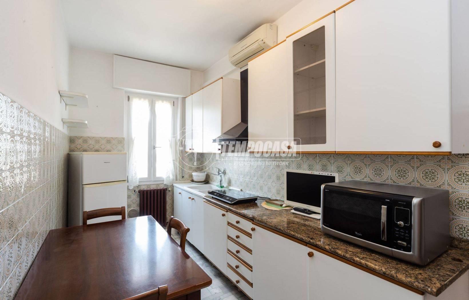 In palazzina ben tenuta, situata nel cuore del paese, proponiamo in vendita ampio appartamento di due locali, posto al sesto ed ultimo piano servito da ascensore.