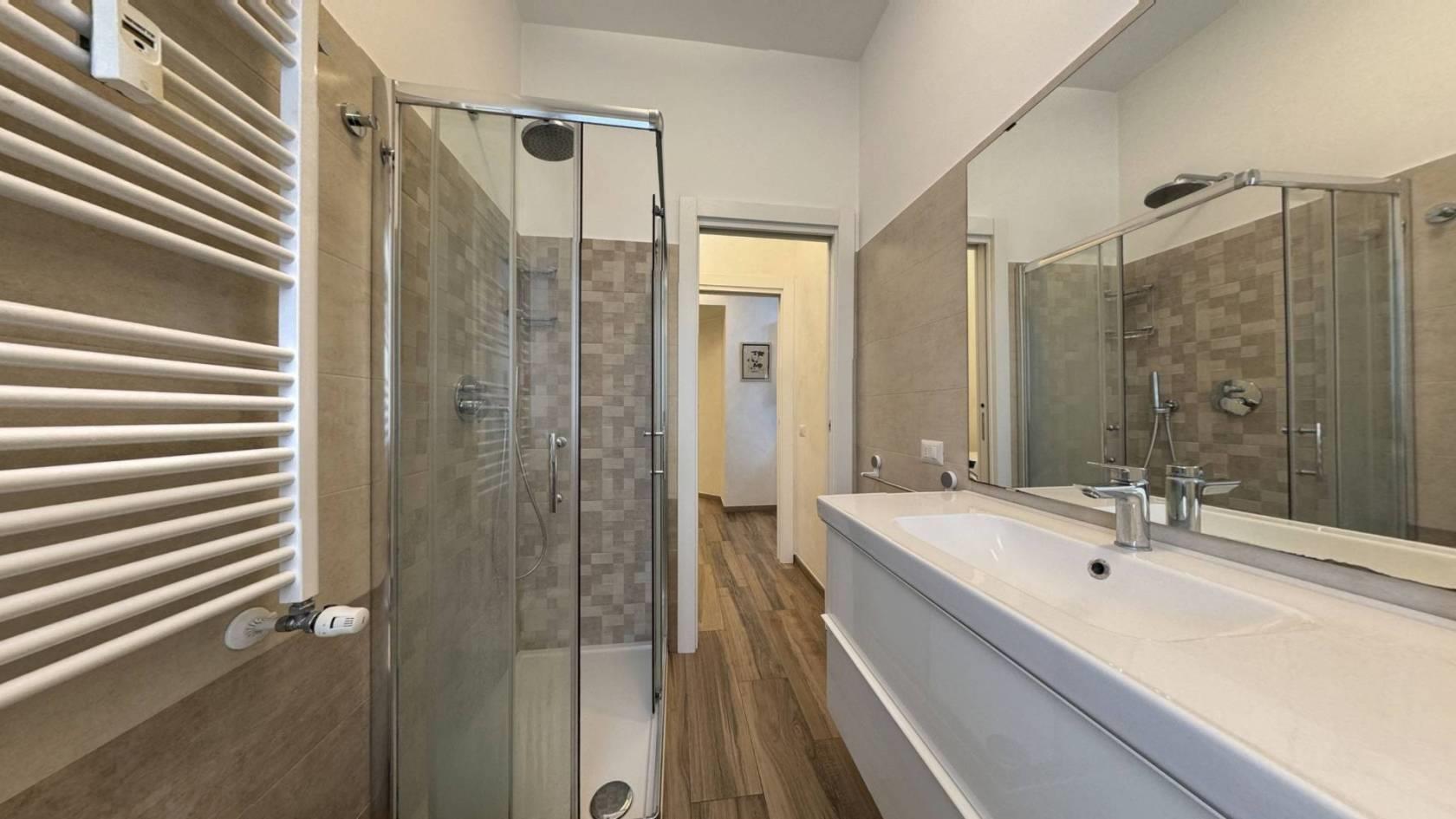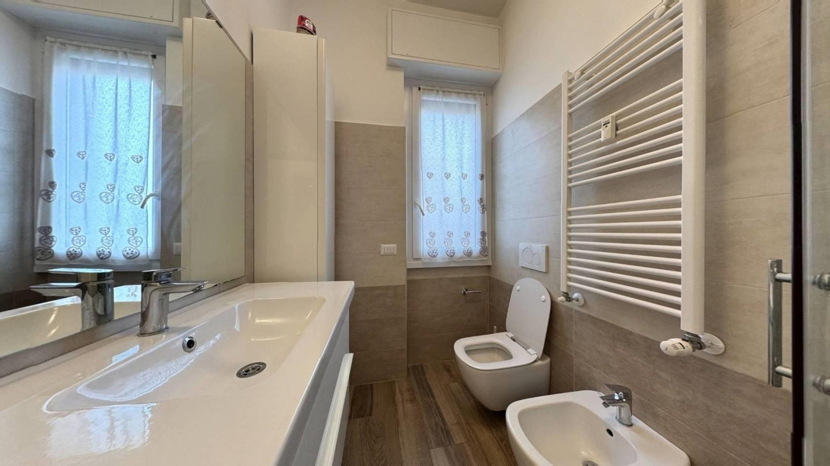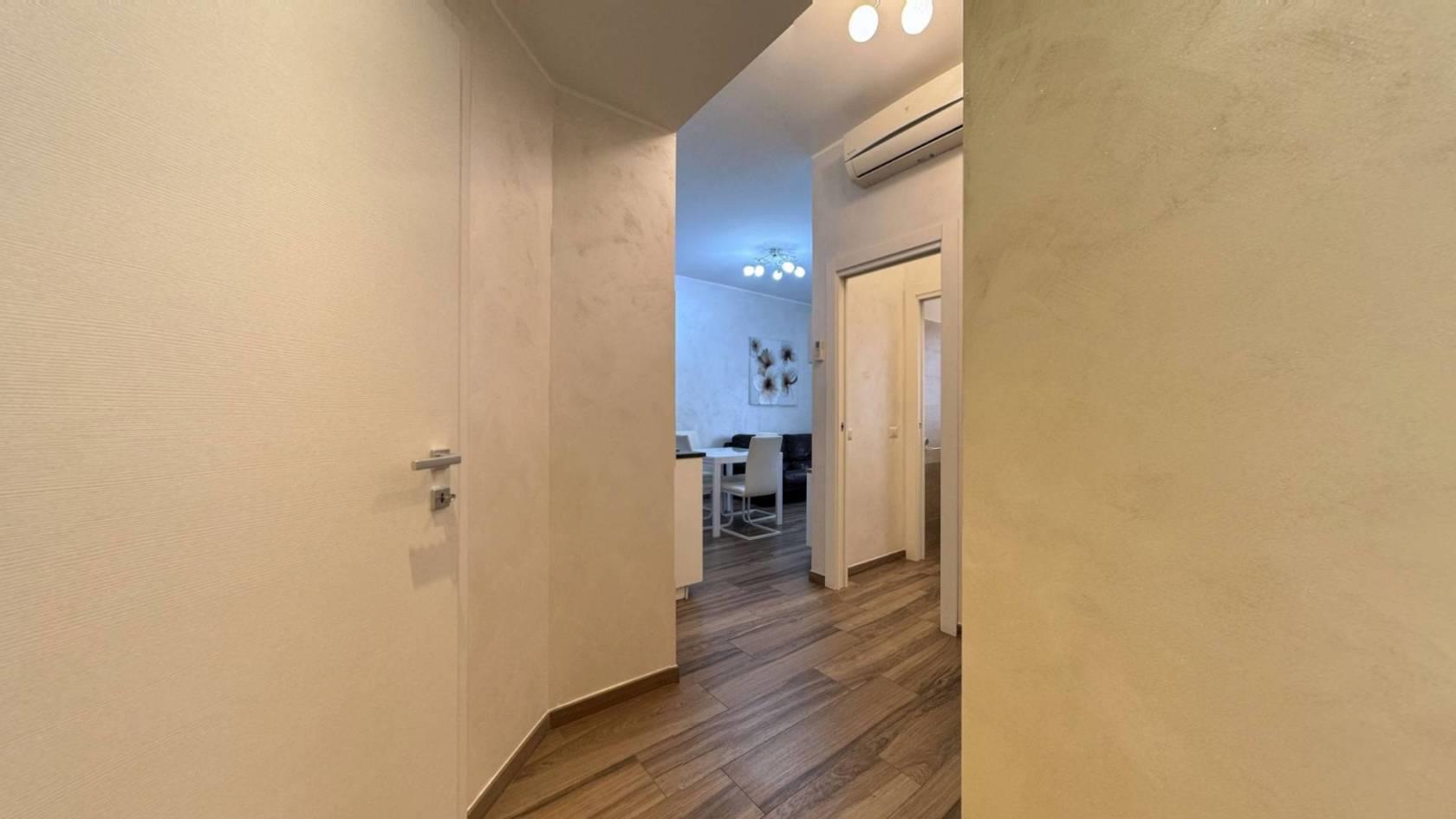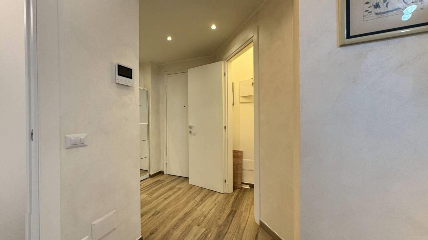 Monza, Via Tiepolo 6 — in zona servitissima con scuole, negozi e comodi collegamenti autobus verso il centro e la stazione, proponiamo al secondo piano di una palazzina un bellissimo bilocale completamente ristrutturato e arredato a nuovo. L’ingresso, ampio e funzionale, divide la zona giorno dalla zona notte: sulla sinistra troviamo il soggiorno arredato con divano, tavolo e mobile TV, con cucina a vista completa di frigorifero, forno e lavastoviglie; sulla destra la camera matrimoniale, dotata di TV e con accesso al balcone. L’appartamento dispone di antibagno adibito a lavanderia con lavatrice e di bagno finestrato con doccia. Il riscaldamento è centralizzato e le Spese condominiali ammontano ad €120,00/mese. Presenti infissi in PVC con doppio vetro, condizionatore.