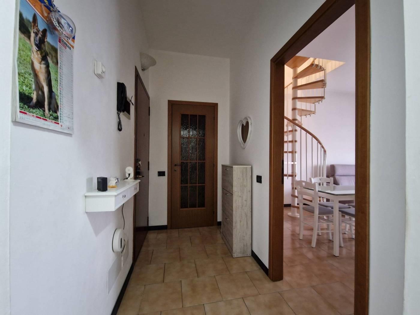 L'appartamento posto al sesto piano con ascensore è composto da ampio ingresso con un comodo ripostiglio, di fronte abbiamo il soggiorno con una scala a chiocciola che conduce al piano sottotetto servito da tre lucernari , dove troviamo un grande open space attualmente adibito a camera da letto . A fianco al soggiorno prosegue l'abitazione con il bagno finestrato con affaccio sul balcone e alla cucina abitabile anch'essa affacciata al medesimo balcone esposto a est.