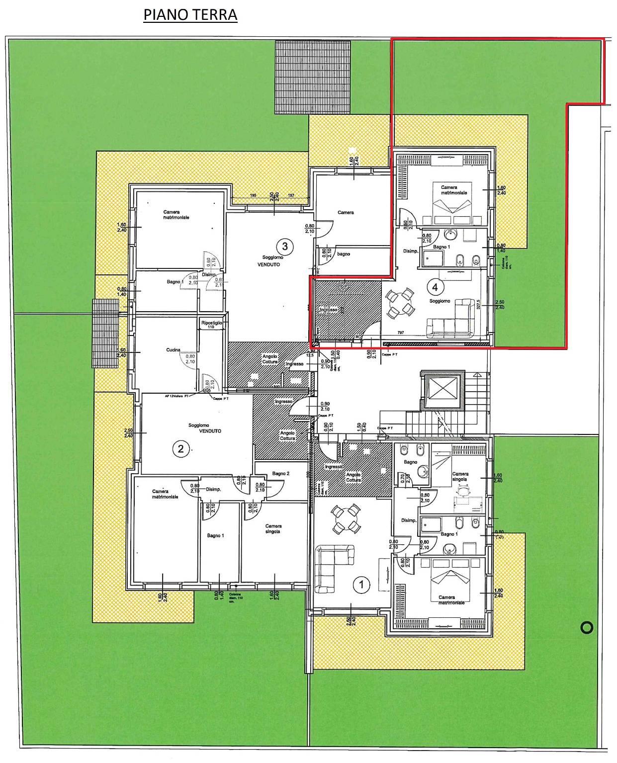 L'appartamento è composto da ampia zona giorno living con cucina a vista con affaccio su un giardino privato di circa 80 mq. sui 2 lati dell'appartamento, disimpegno notte con una camera matrimoniale con uscita sul giardino, bagno finestrato con doccia e attacco lavatrice.