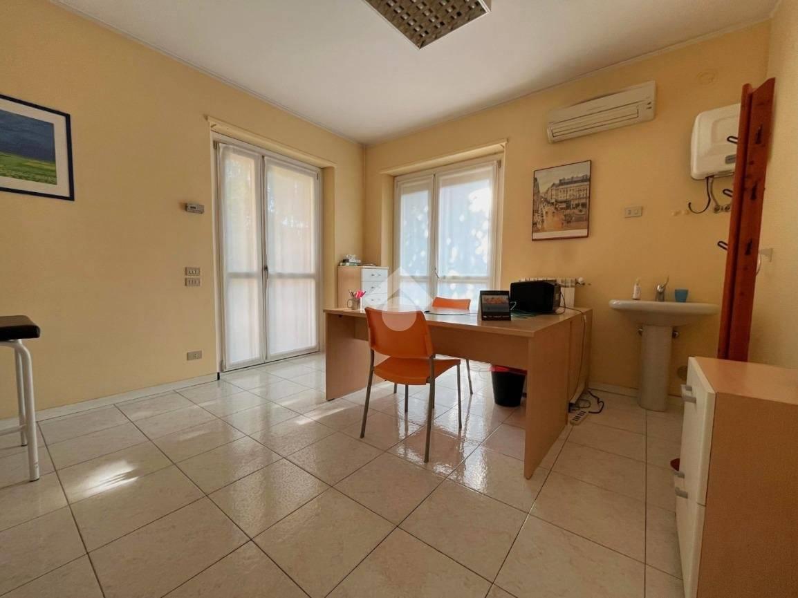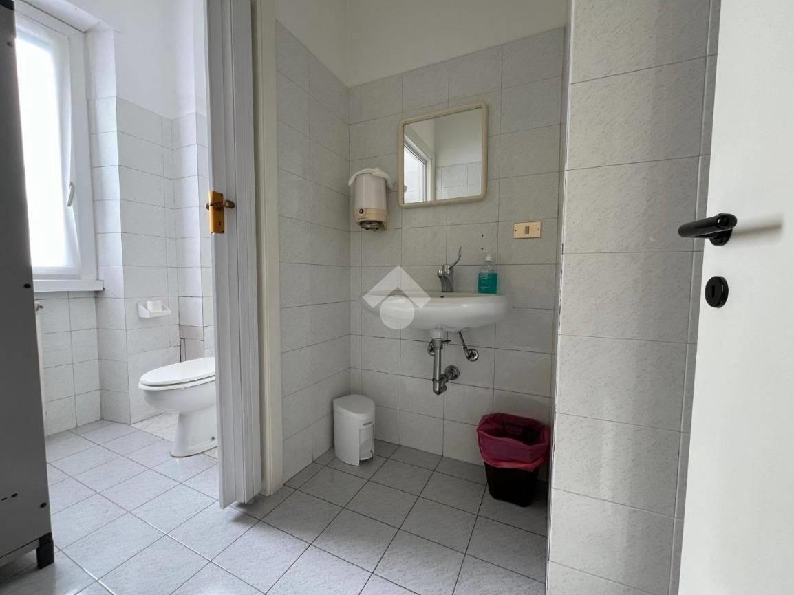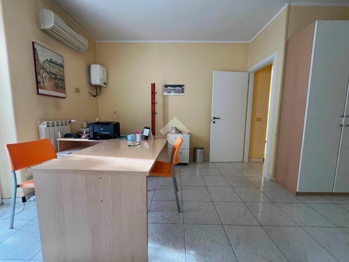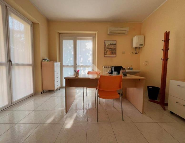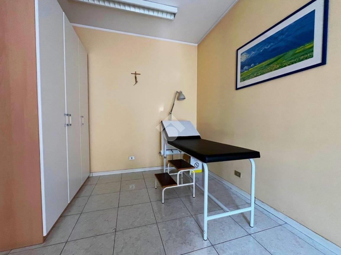 Attualmente utilizzato come studio medico, la soluzione si presta per essere abitata e sfruttata come un comodo bilocale: ingresso con disimpegno, camera e bagno finestrato, corridoio che collega con la zona giorno dove è possibile accedere al balcone.