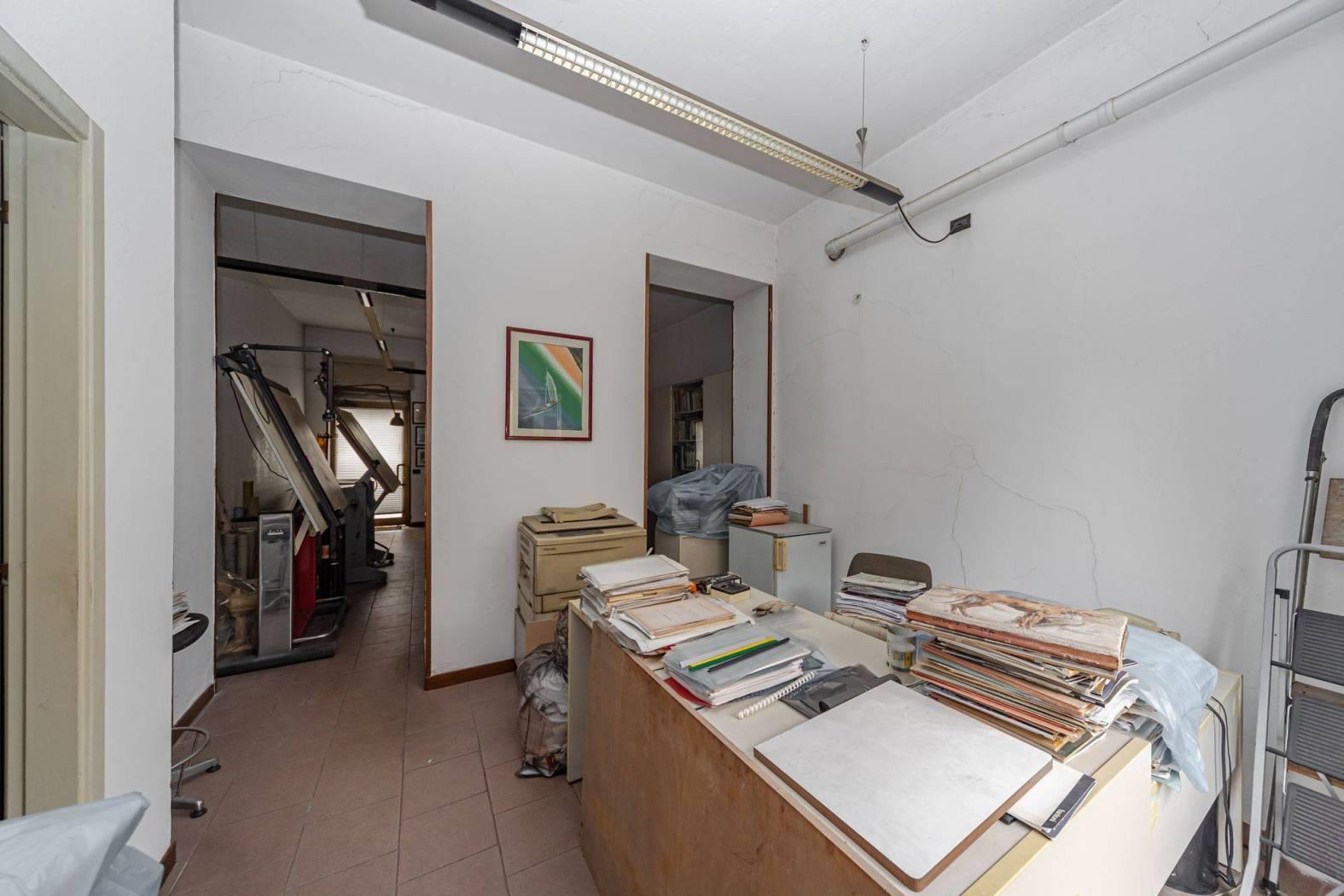 La proprietà è posizionata nel centro storico del paese, in posizione strategica e a breve distanza da via Libertà. Attualmente l'immobile è un negozio che è sempre stato usato come studio professionale, ha una vetrina e l'ingresso direttamente sulla via Battisti e l'accesso secondario dall'interno del condominio.