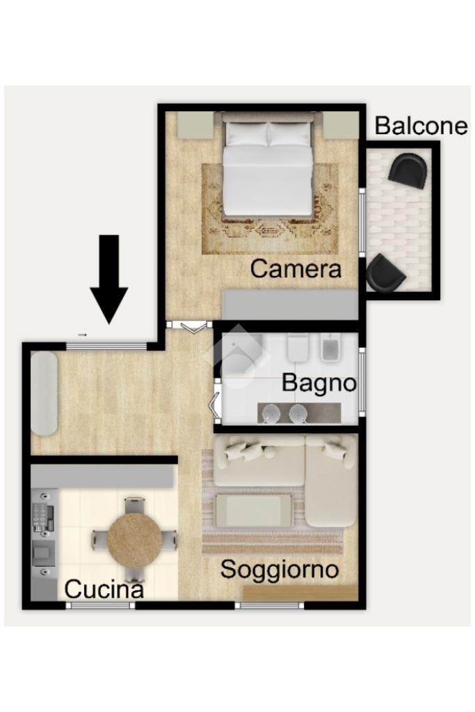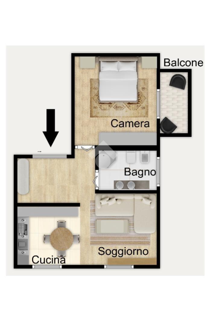 L’immobile si presenta in ottime condizioni ed è pronto per essere abitato ed è composto da ingresso, soggiorno con cucina a vista, bagno con doccia finestrato e camera da letto matrimoniale con balcone. L’abitazione è inoltre dotata di infissi in PVC con doppio vetro effetto legno, che garantiscono un buon isolamento termico e acustico.