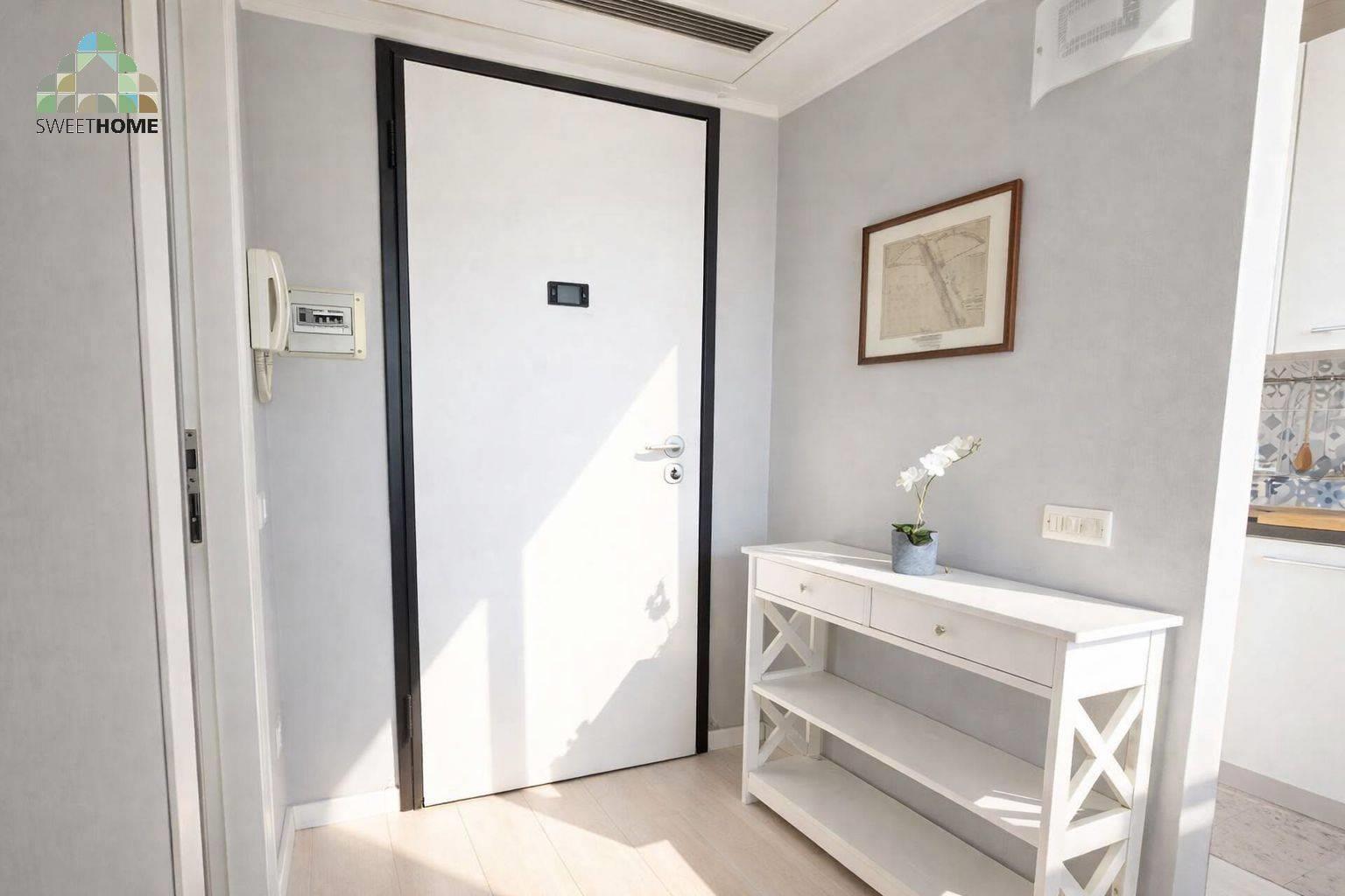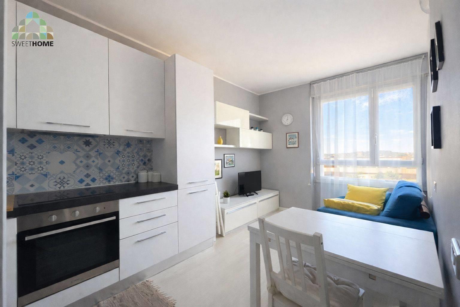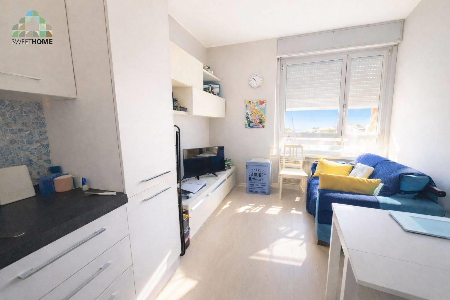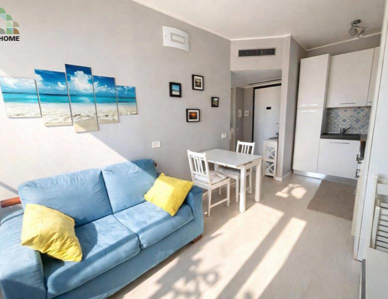 L’appartamento, al 6° piano, è composto da soggiorno con angolo cottura, camera matrimoniale e bagno con box doccia.