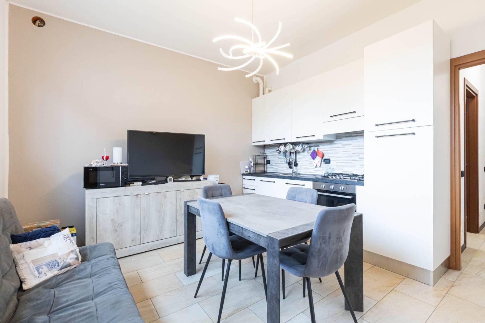 L'appartamento è composto da un luminoso soggiorno con cucina a vista, ideale per godersi al meglio gli spazi e la convivialità. La camera da letto, accogliente e ben disposta, offre il giusto comfort per il riposo. Il bagno, funzionale e moderno, completa la zona giorno.