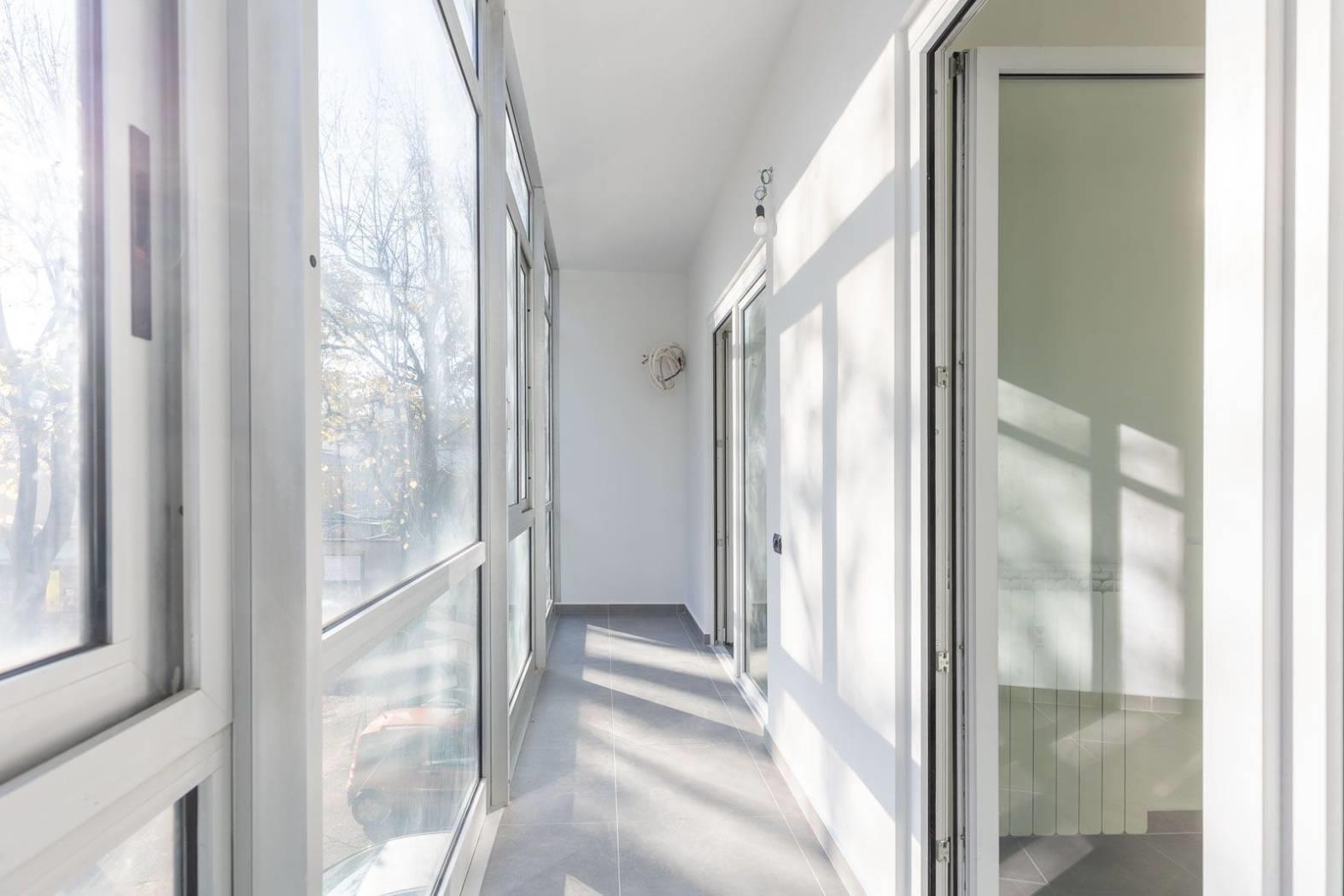 Bilocale in ottimo stato, posto sullo stesso pianerottolo delle altre unità disponibili, composto da soggiorno con angolo cottura con ampio sfogo su balcone verandato ,camera da letto matrimoniale e bagno finestrato.