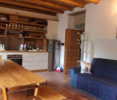 L'unità abitativa è composta da un piano terra con ingresso indipendente, zona giorno con cucina a vista e camino; piano primo composto da ampia camera matrimoniale, bagno con doccia ed accesso sul balcone.