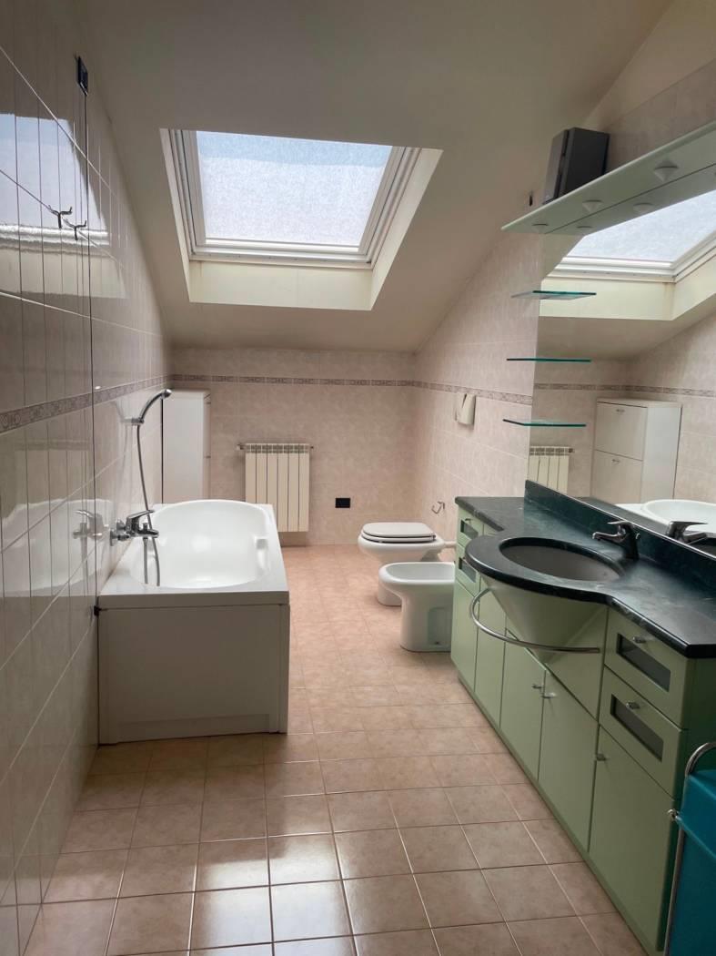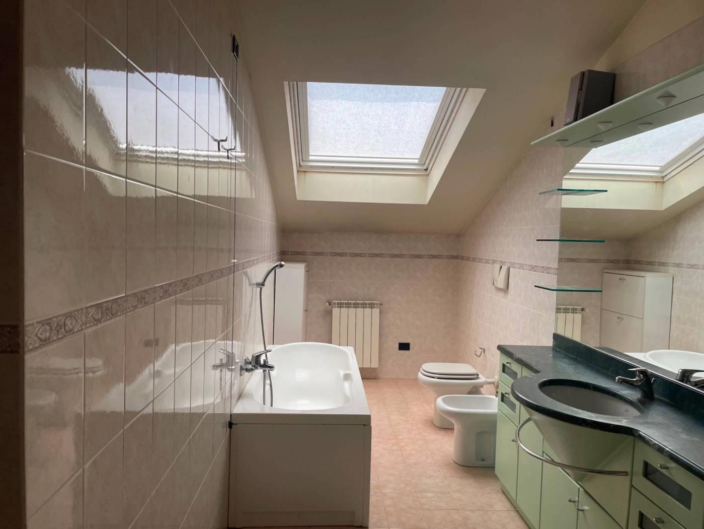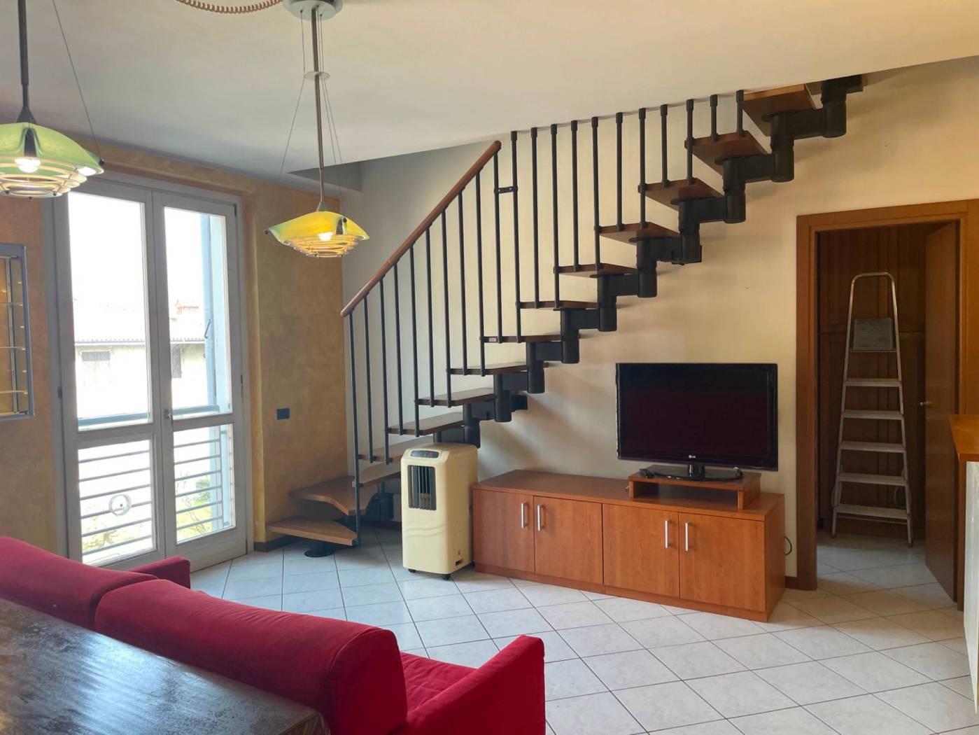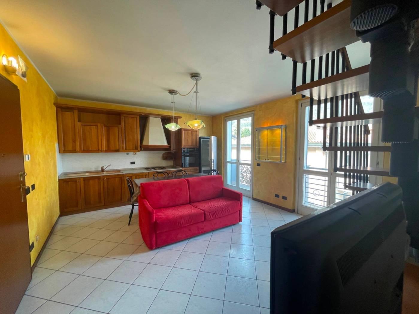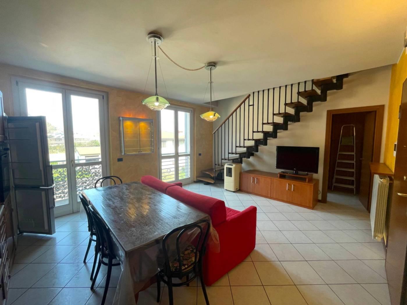 Al primo piano trovi un luminoso soggiorno con cucina a vista, bagno con doccia e balcone; al piano mansardato, un secondo bagno con vasca e un ampio locale guardaroba.