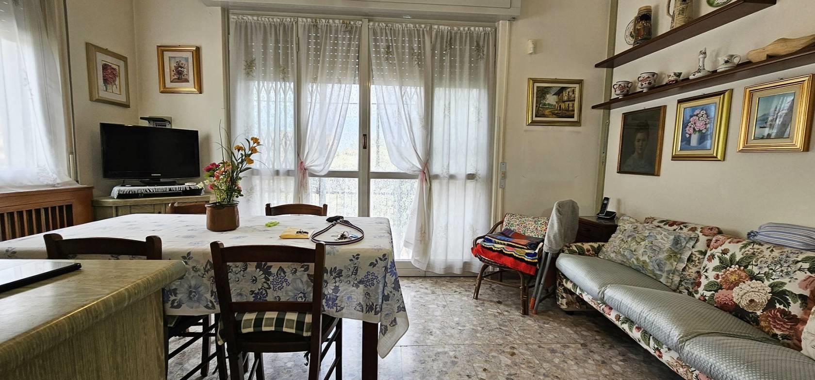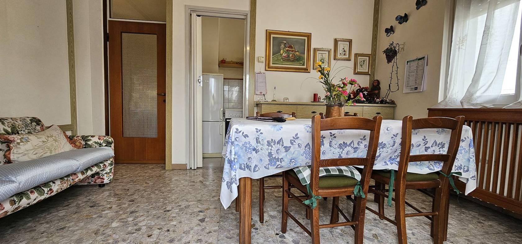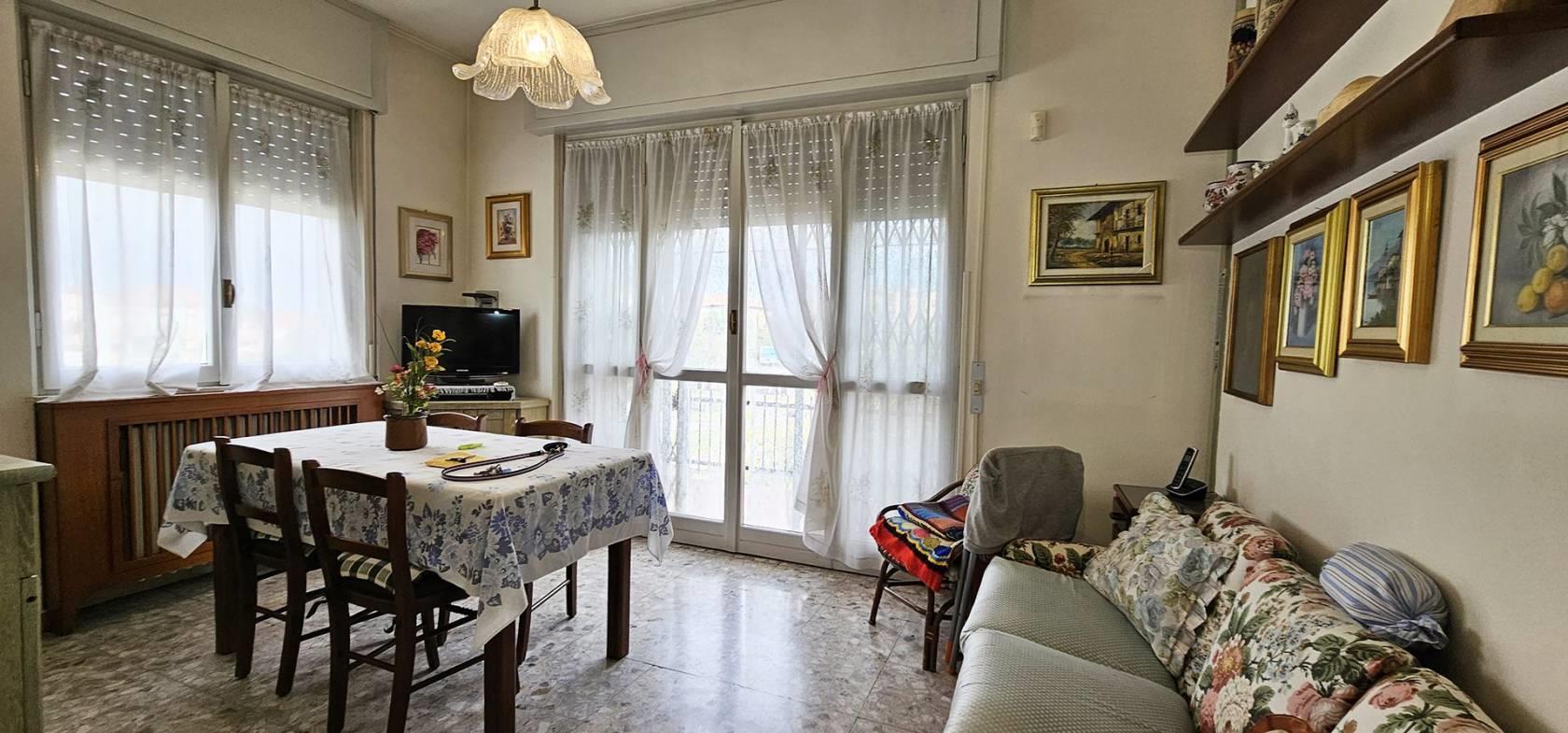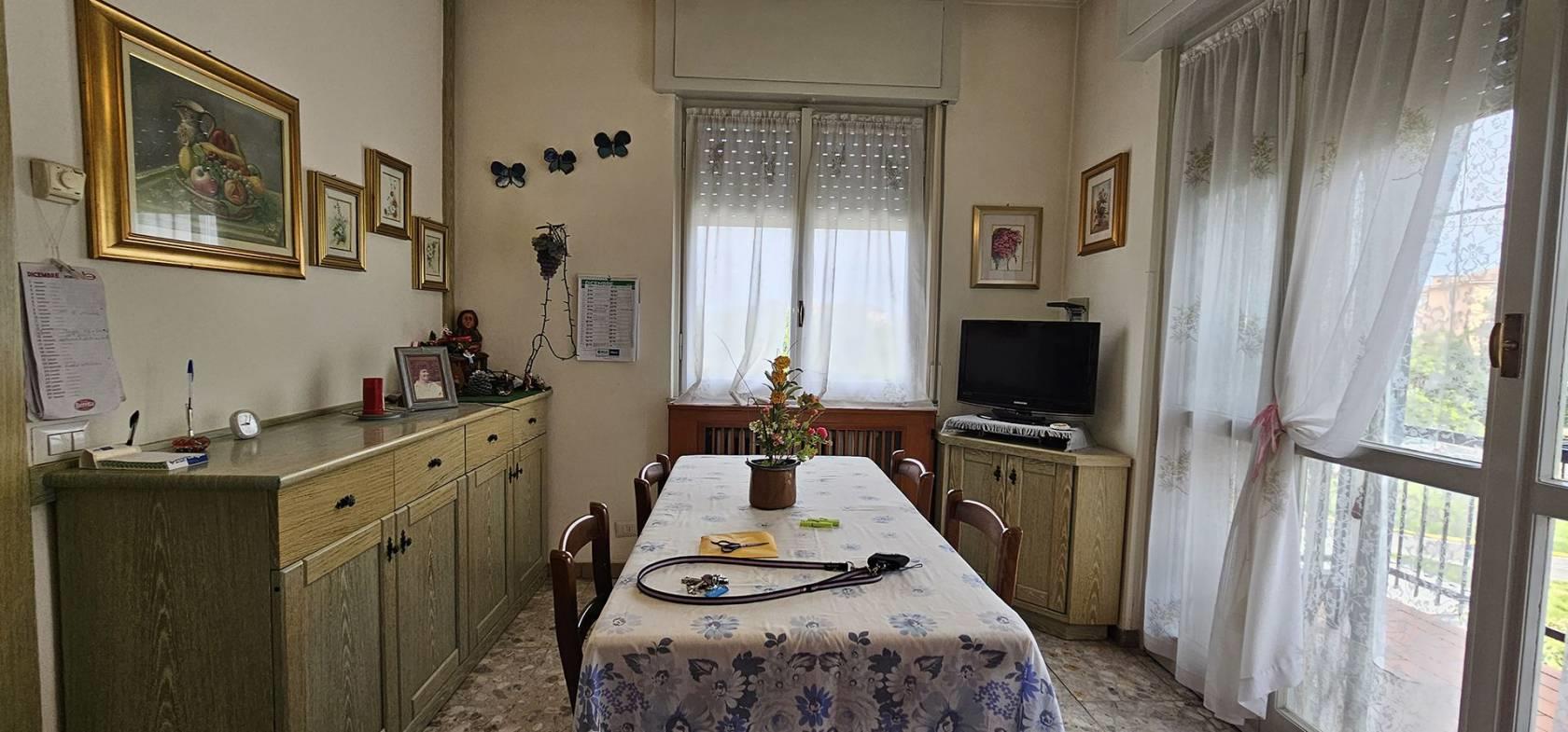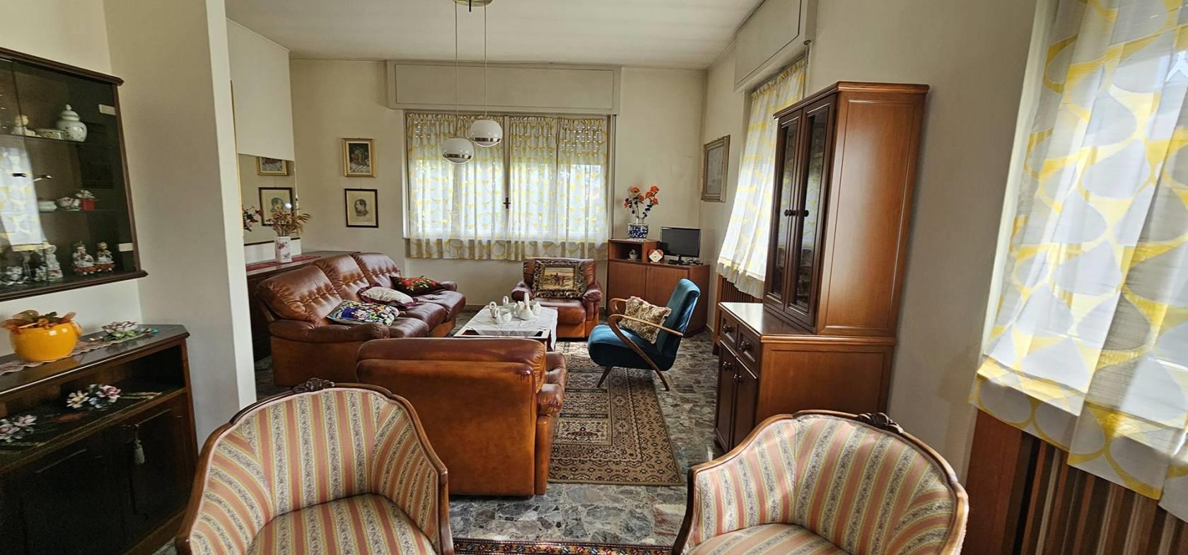 FINITURE: L'Appartamento si presente con finiture originarie ed in discrete condizioni; Pavimentazione realizzata prevalentemente in piastrelle di tipo “marmettoni” ad eccezione del bagno ove è realizzata in piastrelle di ceramica, ed una camera con parquet. Infissi esterni con struttura in legno e vetro, ed avvolgibili in plastica; porte interne in legno, con “specchiatura” in vetro. Riscaldamento AUTONOMO, con radiatori in ghisa; il piano Interrato ha pavimentazione realizzata in “battuto di cemento”. La Palazzina è servita da impianto Servoscala.