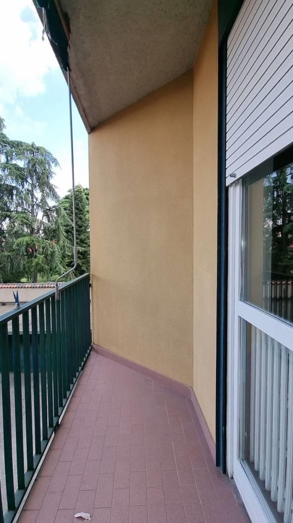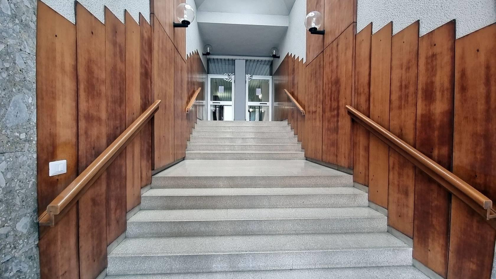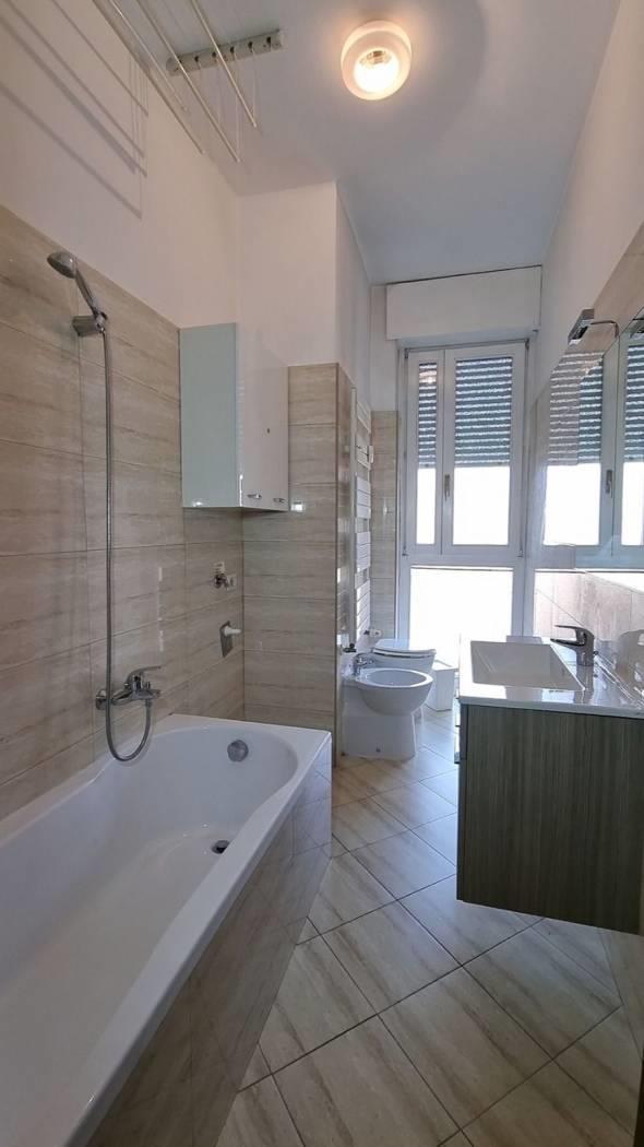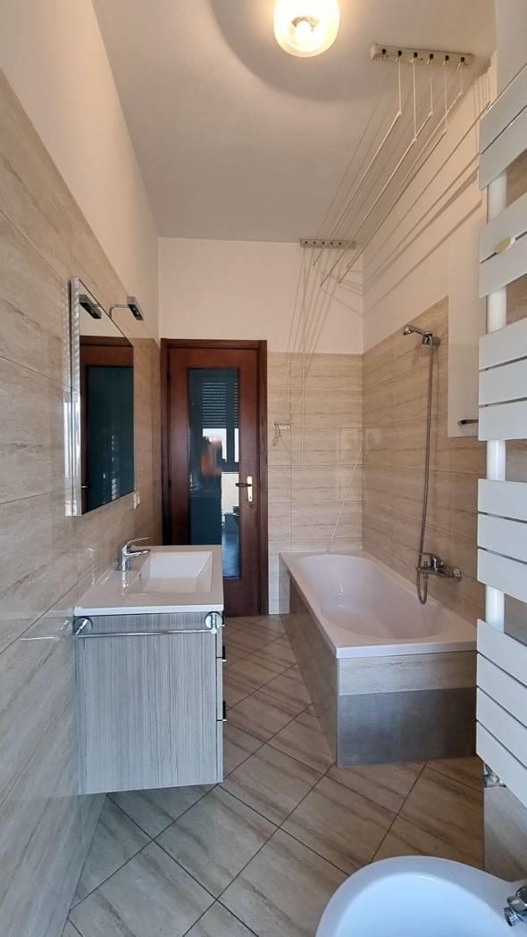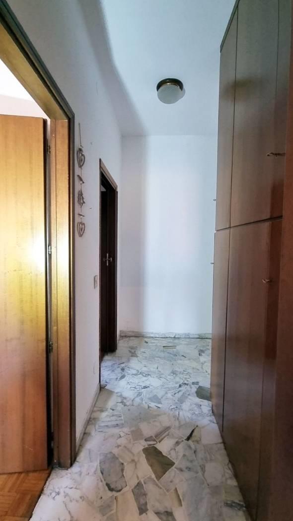 L’ingresso si apre su un luminoso Soggiorno, Cucina semiabitabile, entrambi con affaccio su Balcone, disimpegno che serve la zona notte, ben separata dal resto della casa, offre due camere da letto, di cui una servita da Balcone e un bagno moderno, recentemente rinnovato servito da vasca da bagno. Le finiture si presentano perlopiu’ allo stato originario, pavimentazione realizzata in palladiana nel soggiorno, in parquet a quadrotti nelle camere, ed in ceramica in cucina e nel bagno. Gli infissi sono realizzati in legno con doppio vetro, gli avvolgibili in PVC, impianto di climatizzazione con split in soggiorno Completa l'unità immobiliare il BOX DOPPIO