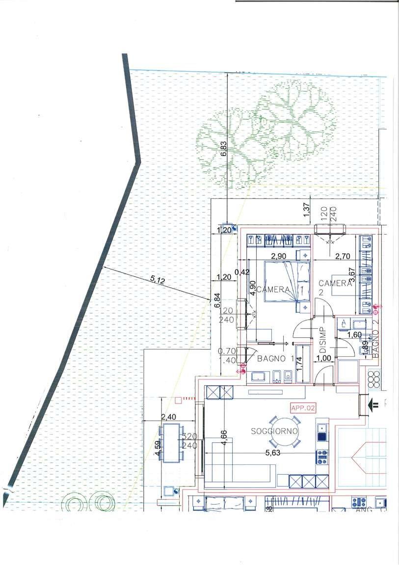 TIPOLOGIA TRILOCALE PIANO TERRA 02: ingresso, soggiorno con cucina a vista e uscita sul portico coperto, disimpegno notte, camera matrimoniale, seconda camera, 2 bagni, giardino privato. Autorimessa. Prezzo: €. 275.000,00 + iva.