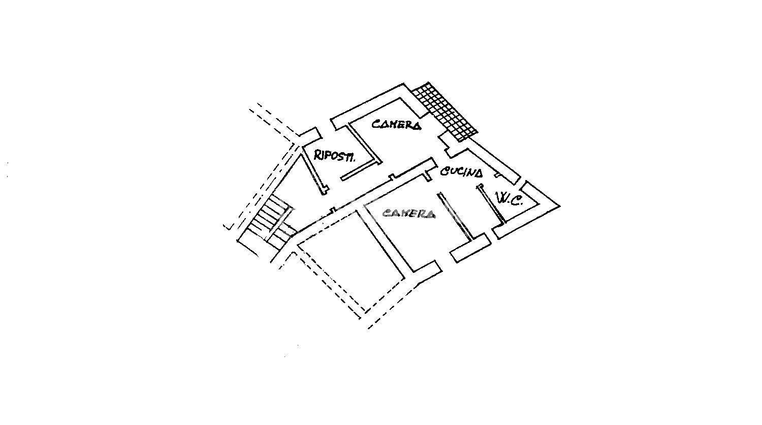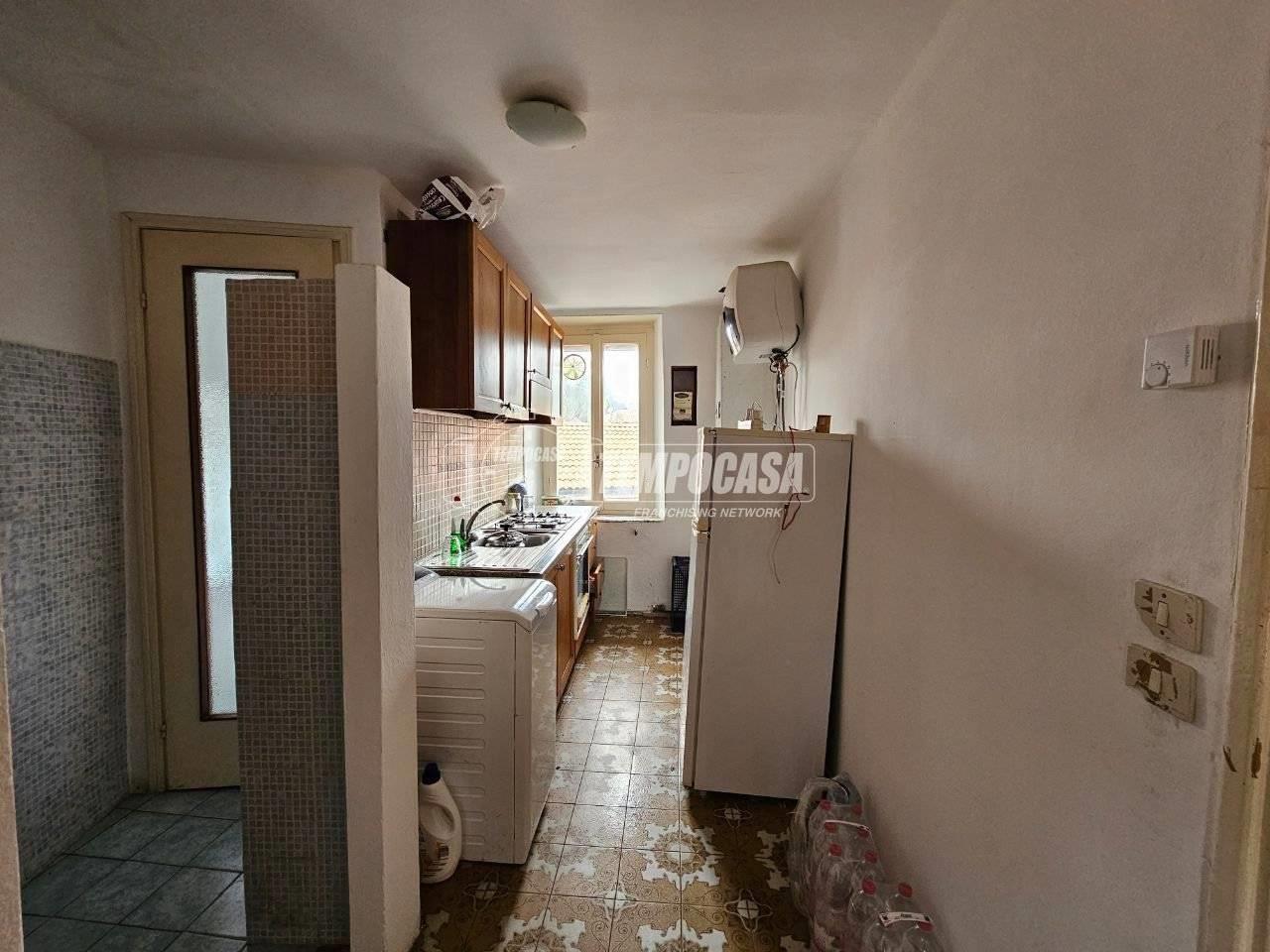 La soluzione, sita al secondo ed ultimo piano senza ascensore, è attualmente così disposta: ingresso, cucina, soggiorno con accesso al balcone, ripostiglio adibito a camera, camera da letto e bagno finestrato con vasca.