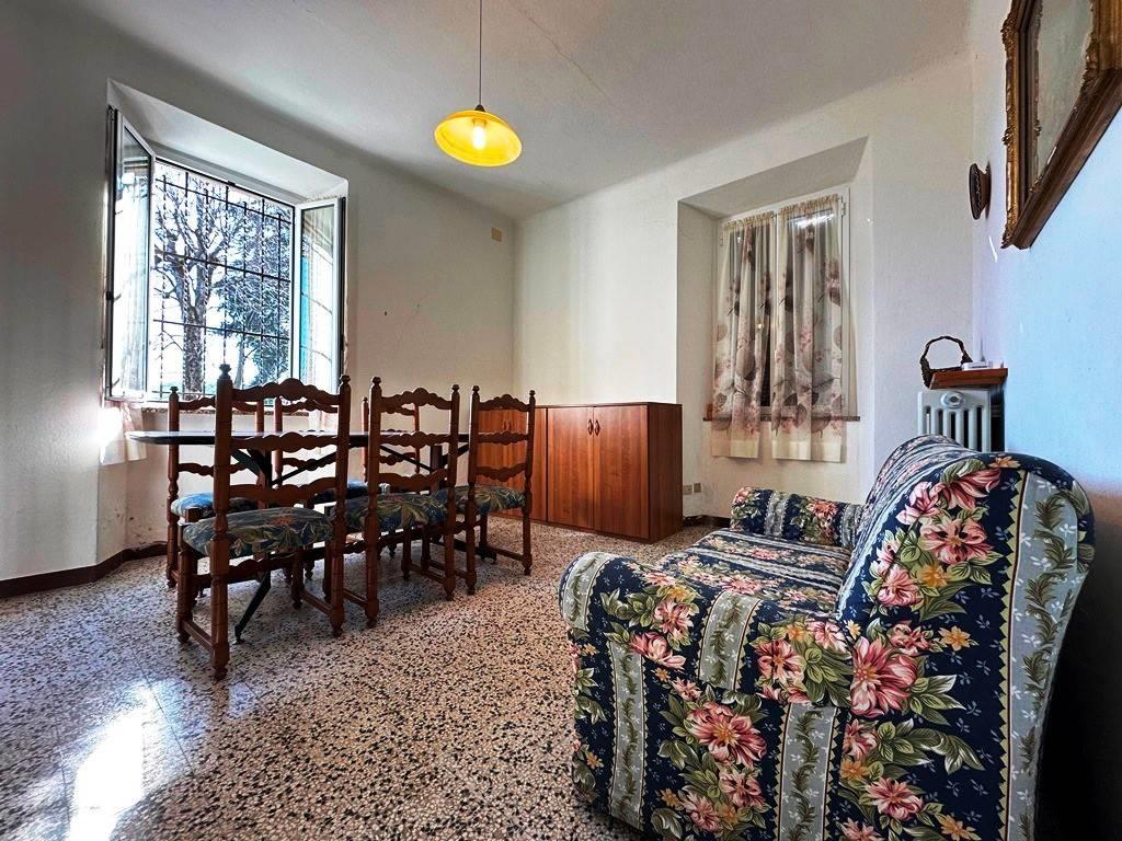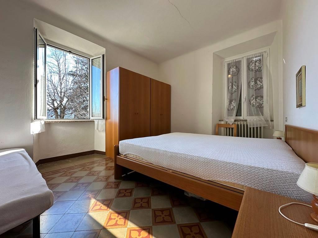 In piccolo ed ordinato contesto di sole tre unità immobiliari, proponiamo caratteristico appartamento posto su due livelli composto da ingresso, soggiorno con camino, cucina abitabile al piano terra, due camere, bagno e ripostiglio al piano primo collegati fra loro tramite scala interna in legno. L'abitazione sviluppa una superficie commerciale di mq 101 ed dotata di buone finiture interne risalenti all'epoca della costruzione: pavimentazione è in marmo e ceramica, infissi in alluminio ed ante in legno. Gli impianti tecnologici relativi alla corrente elettrica e riscaldamento sono stati rivisti: l'immobile dispone di predisposizione impianto di riscaldamento autonomo a metano con caloriferi già installati (manca caldaia) ed impianto elettrico di recente realizzazione perfettamente funzionante. Completa la proprietà piccola area esterna di pertinenza di mq 7 antistante l'abitazione adibita a posto auto. Ottima esposizione solare e vista panoramica. Ideale come casa vacanza o come piccolo investimento immobiliare mirato alla locazione. Disponibilità immediata.