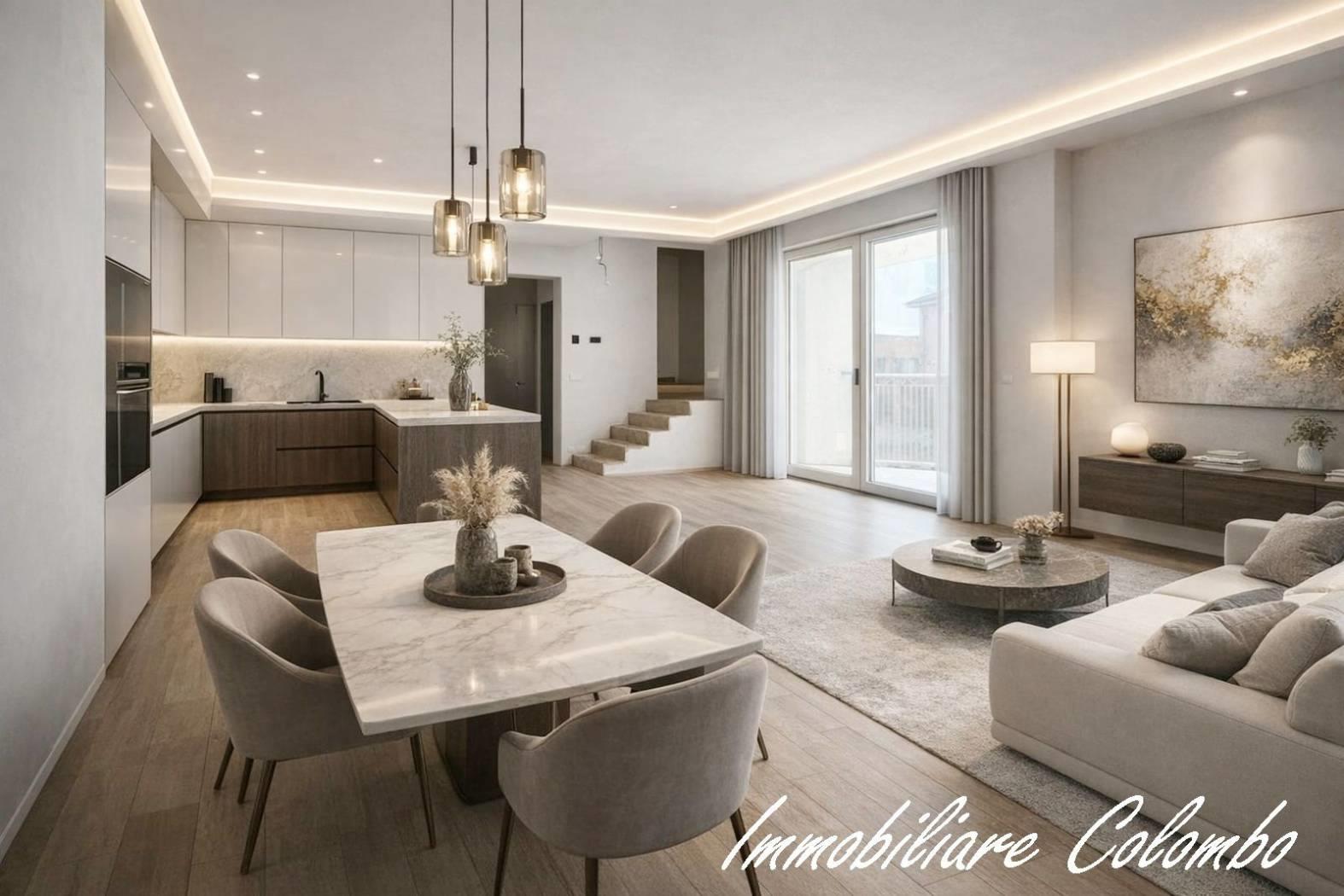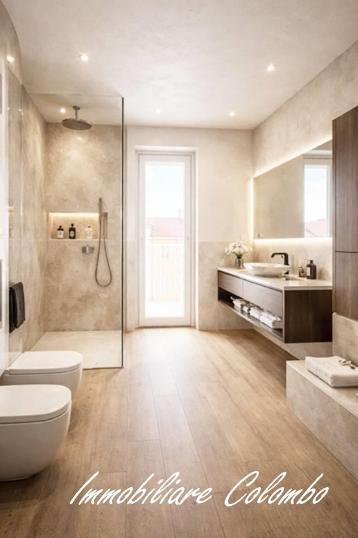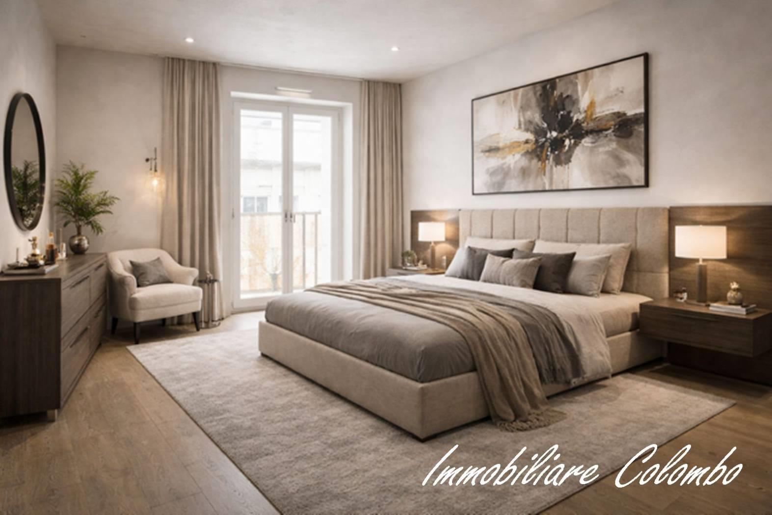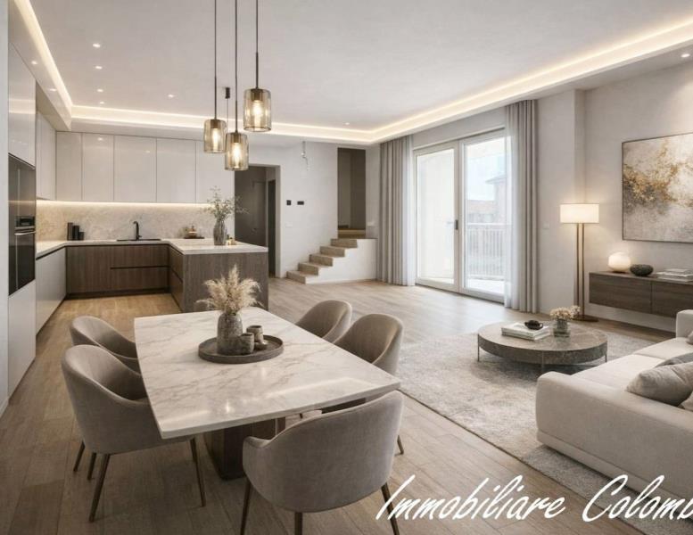 Centro. Vendita ad imposta di registro. "Residenza Sciesa 24". In contesto di nove famiglie, appartamento di mq. 115 ca. disposto su due livelli. Al piano primo, ingresso, soggiorno con cucina a vista, bagno, balcone - al secondo piano, 2 camere, bagno, 2 balconi. Possibilità posto auto € 15.000,00. Completamente ristrutturato. Facciata ad intonaco con isolamento termico a cappotto. Riscaldamento con pannelli radianti a pavimento. Serramenti in alluminio/legno con doppi vetri. Oscuramento garantito da avvolgibili in plastica pesante motorizzati. Porta primo ingresso blindata. Porte interne in legno a battente. Pavimentazione in ceramica nella zona giorno e parquet essenza Rovere nella zona notte. Sanitari sospesi Ideal Standard con miscelatori. Impianto videocitofonico. Predisposizione impianto climatizzazione. Predisposizione impianto allarme volumetrico e perimetrale. Impianto fotovoltaico per le parti comuni. Ascensore. Classe A. (I render degli interni sono indicativi).