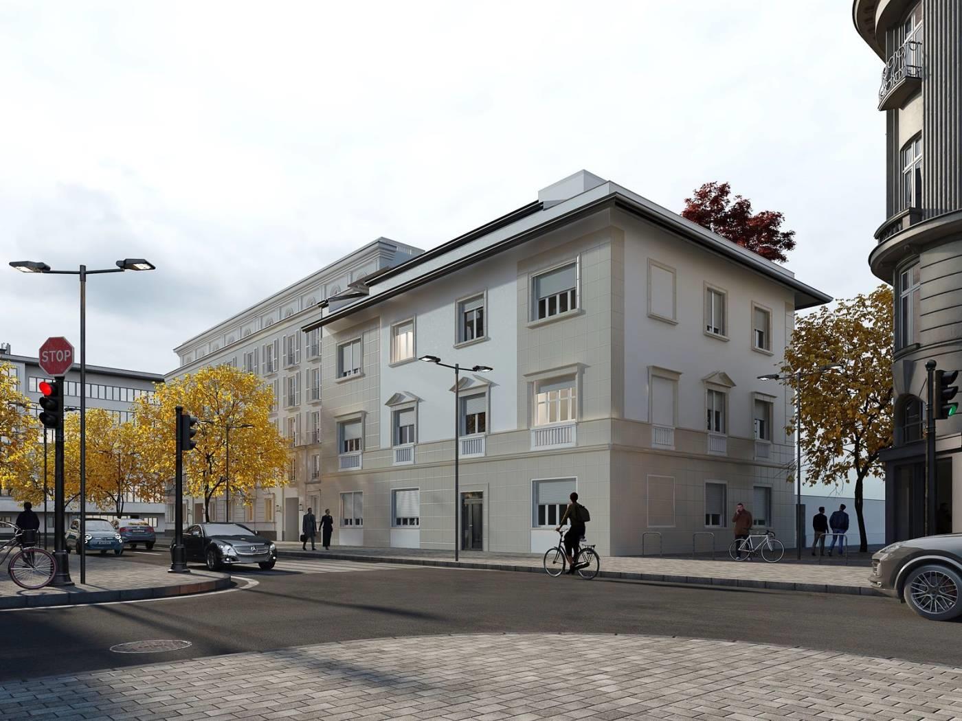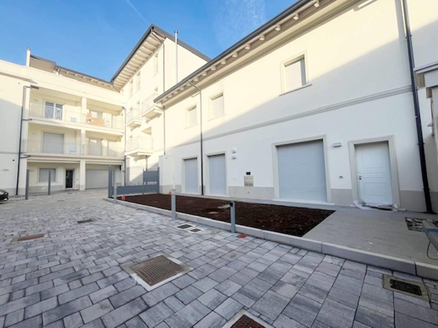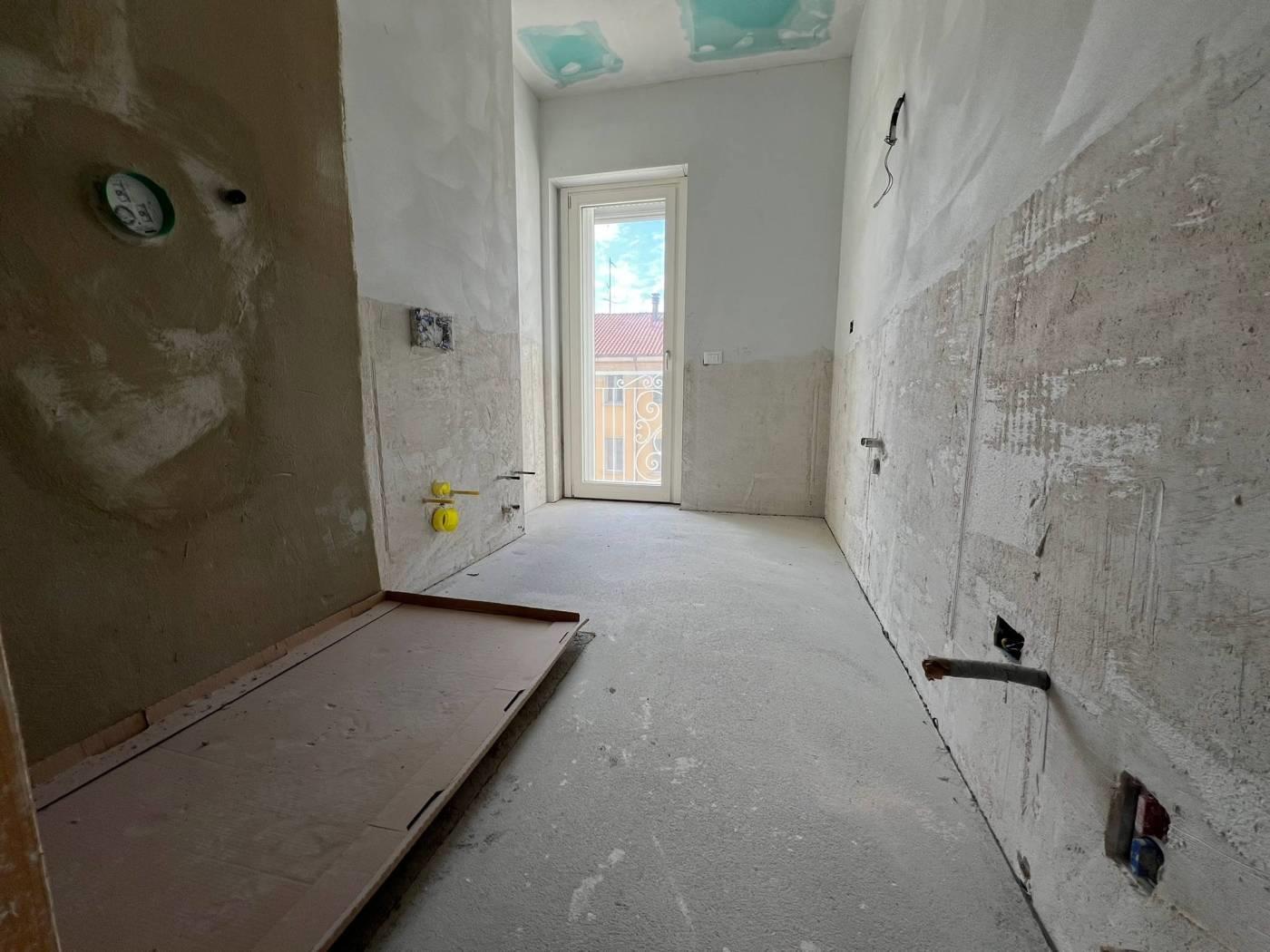 Centro. Vendita ad imposta di registro. "Residenza Sciesa 24". In contesto di nove famiglie, appartamento di mq. 115 ca. disposto su due livelli. Al piano primo, ingresso, soggiorno con cucina a vista, bagno, balcone - al secondo piano, 2 camere, bagno, 2 balconi. Possibilità posto auto € 15.000,00. Completamente ristrutturato. Facciata ad intonaco con isolamento termico a cappotto. Riscaldamento con pannelli radianti a pavimento. Serramenti in alluminio/legno con doppi vetri. Oscuramento garantito da avvolgibili in plastica pesante motorizzati. Porta primo ingresso blindata. Porte interne in legno a battente. Pavimentazione in ceramica nella zona giorno e parquet essenza Rovere nella zona notte. Sanitari sospesi Ideal Standard con miscelatori. Impianto videocitofonico. Predisposizione impianto climatizzazione. Predisposizione impianto allarme volumetrico e perimetrale. Impianto fotovoltaico per le parti comuni. Ascensore. Classe A. (I render degli interni sono indicativi).