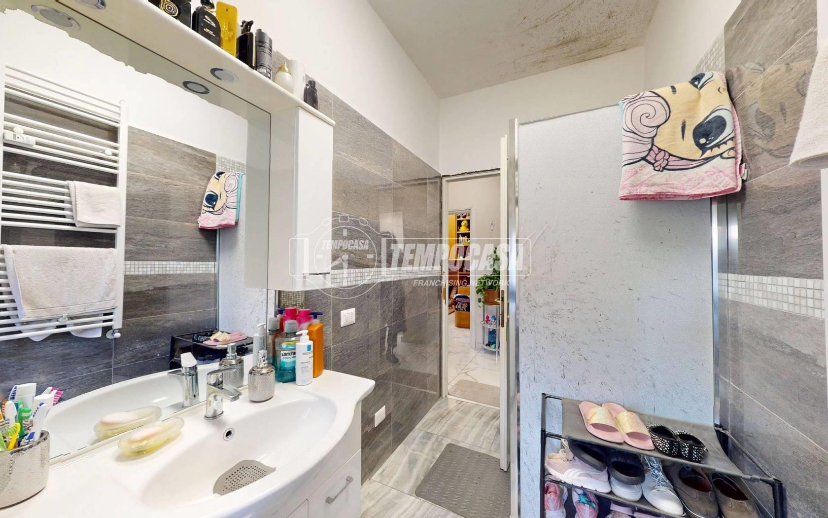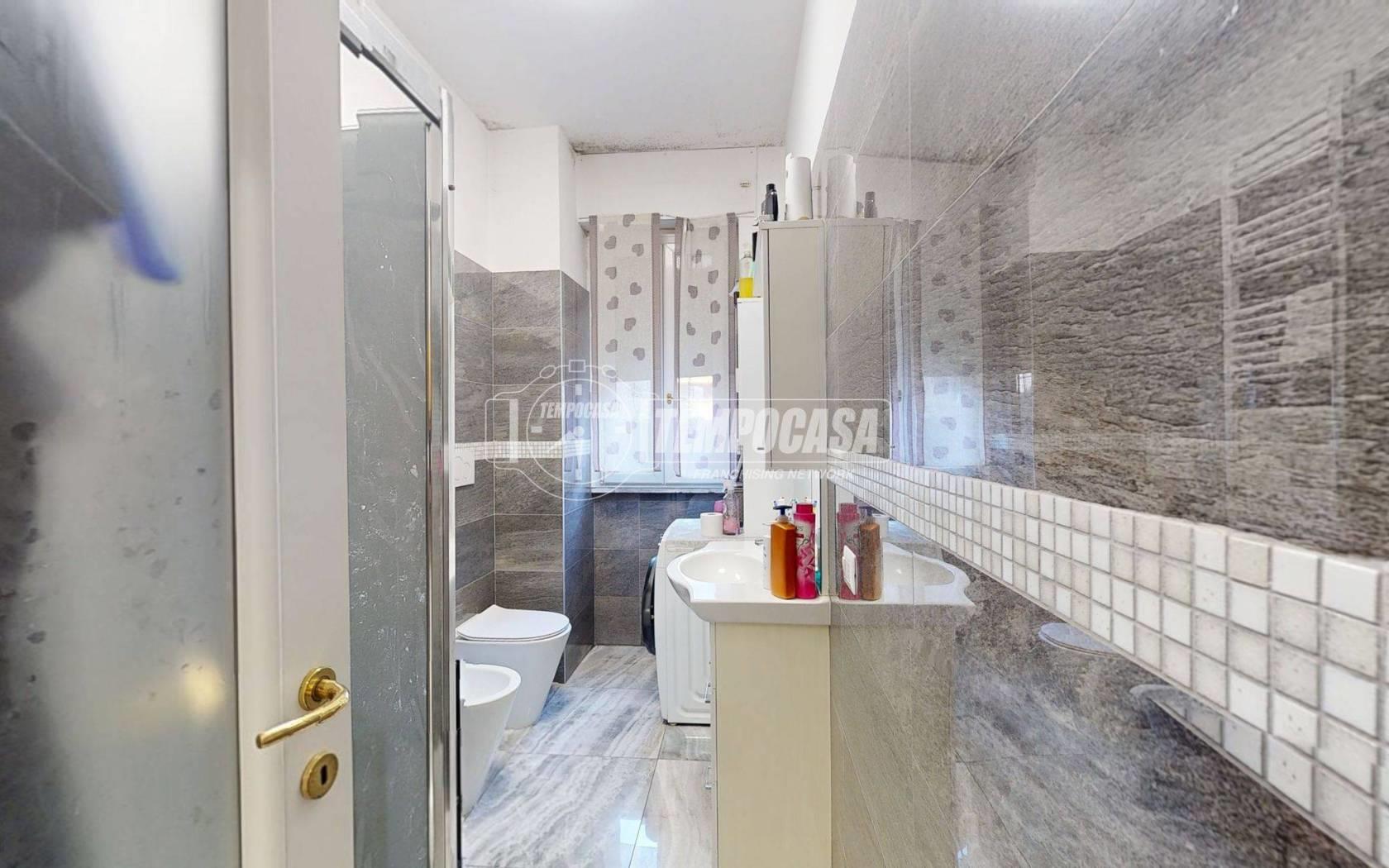 Il bagno, funzionale e ben disposto, completa la zona notte. Dalla zona giorno si accede anche a un balcone di 3 mq, utile come sfogo esterno. L’immobile presenta infissi in PVC con vetro doppio, che garantiscono un buon isolamento termico e acustico, e pavimenti in grès porcellanato, moderni, resistenti e di facile manutenzione.