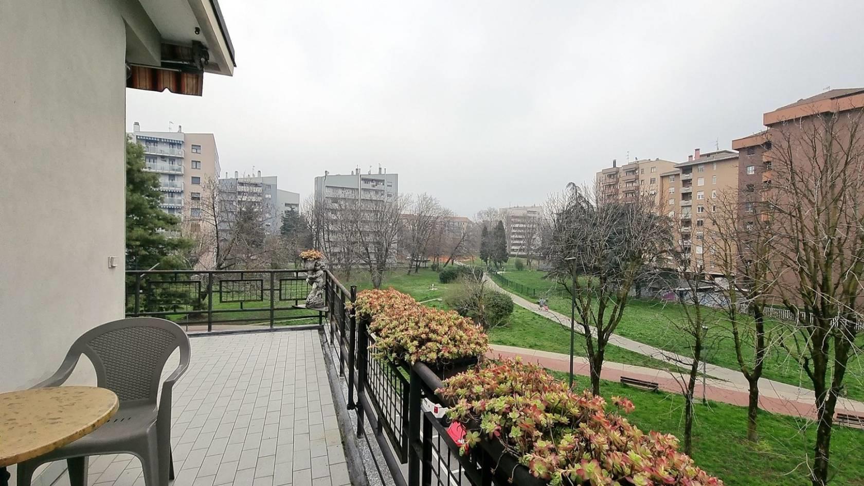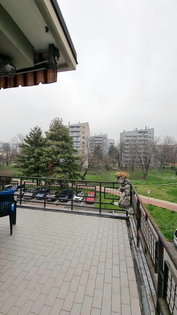 L’appartamento accoglie con un soggiorno piacevole e ben distribuito, collegato alla cucina abitabile aperta, sulla zona giorno separata da un caratteristico mezzo muretto che mantiene la continuità degli spazi e rende l’ambiente conviviale e funzionale. La zona notte è composta da con comodo disimpegno con pratica nicchia ripostiglio con caldaia, servito da attacchi acqua per posizionare la lavatrice e ripostiglio soppalcato, ideale per sfruttare al meglio gli spazi e da una Camera da letto confortevole, bagno spazioso servito sia vasca che da doccia, Il vero valore aggiunto della casa è lo splendido TERRAZZINO di circa 19 mq, dotato di tenda da sole, con affaccio sul parco della zona: uno spazio perfetto per godersi momenti di relax all’aria aperta, pranzare nella bella stagione o creare un piccolo angolo verde. L’immobile si presenta in buone condizioni interne ed è dotato di: porta d’ingresso blindata, pavimentazione realizzata in ceramica in tutti gli ambienti, le porte interne hanno una struttura in legno con eleganti vetri stile inglese, infissi sono realizzati in alluminio con vetrocamera, tapparelle in PVC e zanzariere. Riscaldamento autonomo con radiatori in ghisa. Il terrazzo è inoltre Completa la proprietà, al piano terra in corpo staccato, un **BOX singolo di circa 14 mq con attacchi acqua e corrente, ad €15.000, dotato anche di finestra interna.