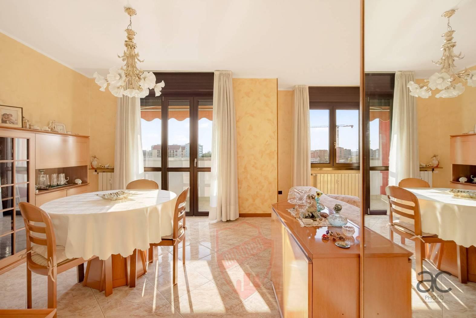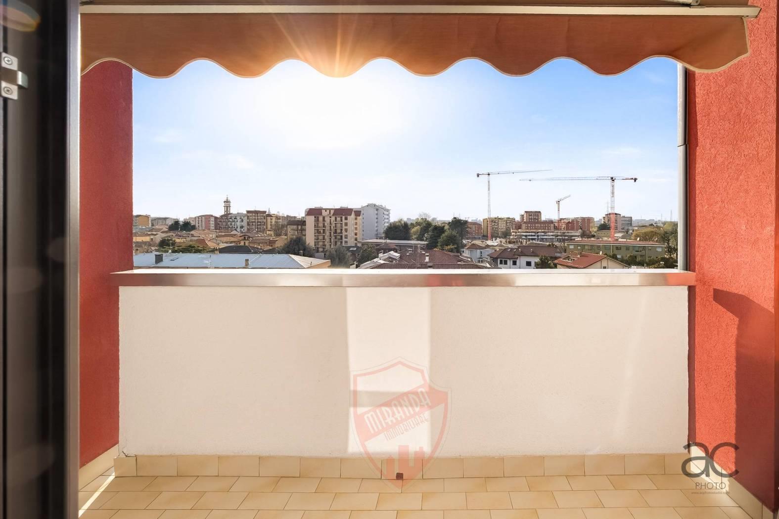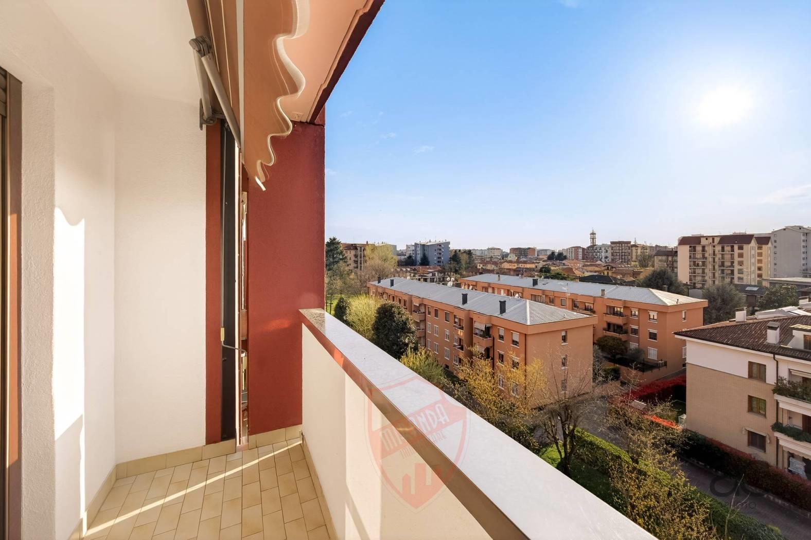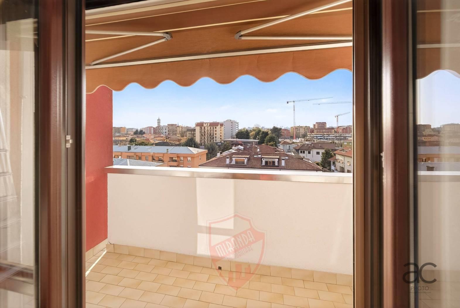 Cologno M.se- zona servitissima a pochi passi sia da MM COLOGNO CENTRO che MM COLOGNO NORD, Miranda Immobiliare propone in Vendita ampio Appartamento di 110 mq, ubicato al piano 6° ed ultimo Piano con ascensore, in Signorile contesto con giardino condominiale. La soluzione originariamente concepita come 4locali al suo interno Si dispone così: Ingresso, Salone doppio con accesso al primo comodo Balcone, Cucina abitabile, secondo balcone, disimpegno della zona notte avente, Camera matrimoniale, Servizio finestrato, 2° Camera e vano ripostiglio. Internamente in ottime condizioni, gode della doppia esposizione e vista panoramica che lo rende molto luminoso,