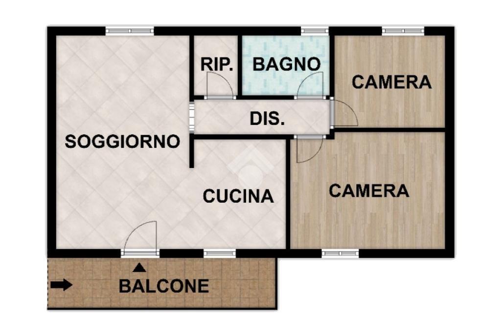 All’interno si compone di un’accogliente zona giorno con cucina a vista ed affaccio sul balcone, un disimpegno di accesso alla zona notte, due camere da letto, un bagno finestrato ed un pratico ripostiglio.