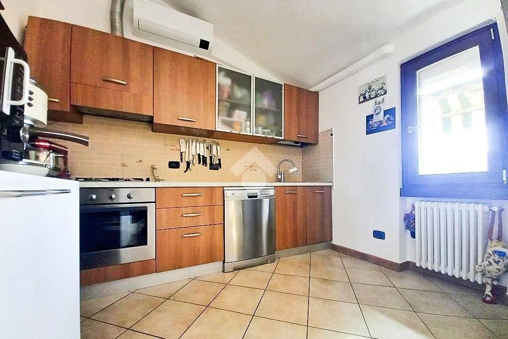 L'appartamento, completamente ristrutturato nel 2013, è collocato al secondo piano mansardato ed è libero su tre lati: quello d’ingresso, affacciato sulla corte, è dotato di un balcone coperto di 7 mq con eccellente esposizione a sud-ovest.