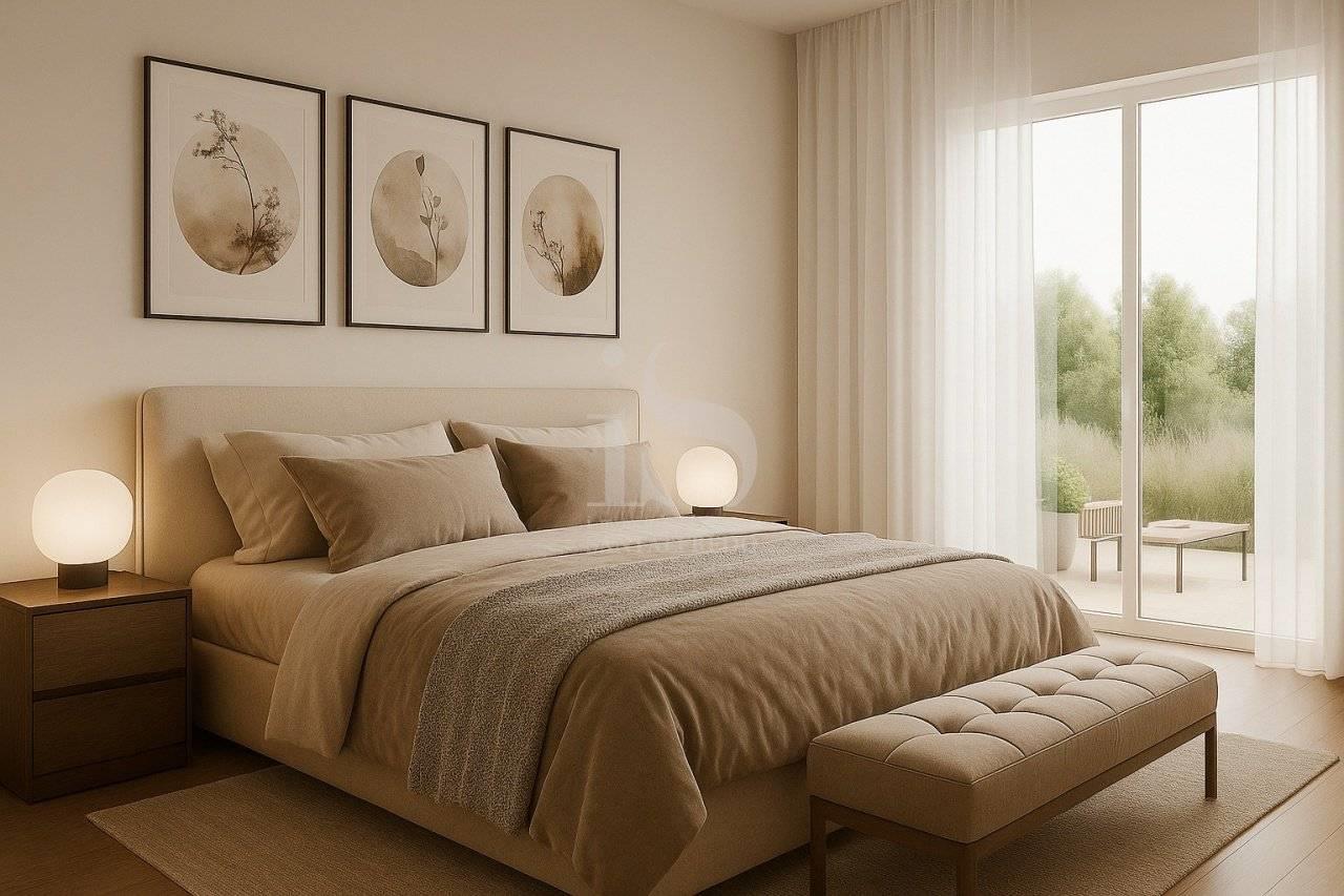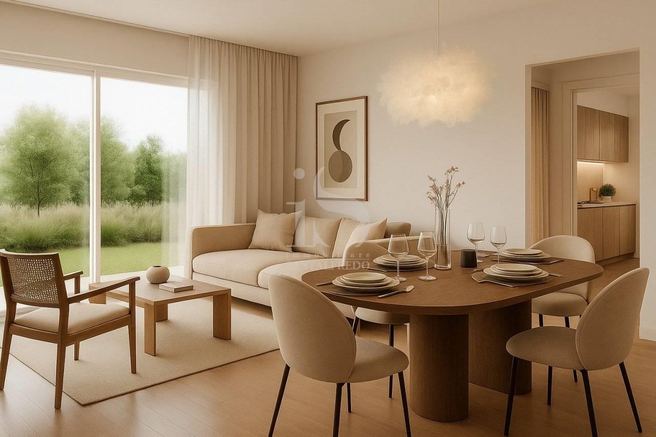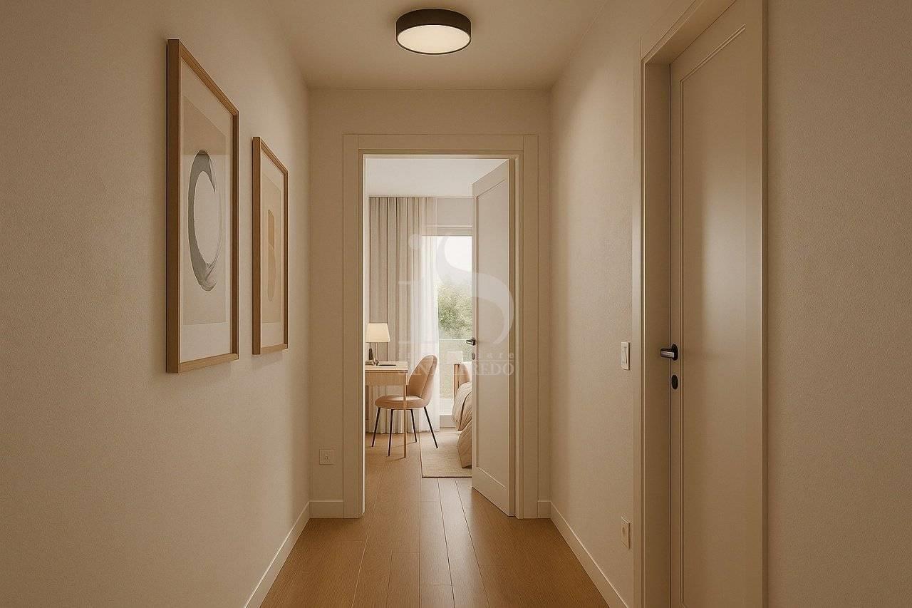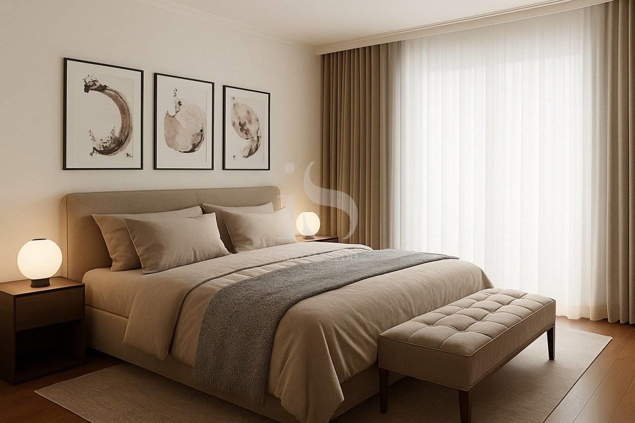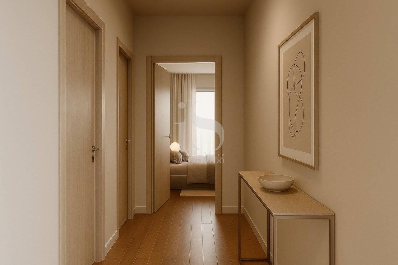 La zona notte è organizzata con razionalità: due camere ben dimensionate e un bagno finestrato di ampia metratura, oltre a un secondo servizio di supporto alla zona giorno. Le finiture interne sono previste in gres porcellanato o parquet di prima scelta, con possibilità di personalizzazione cromatica e materica.