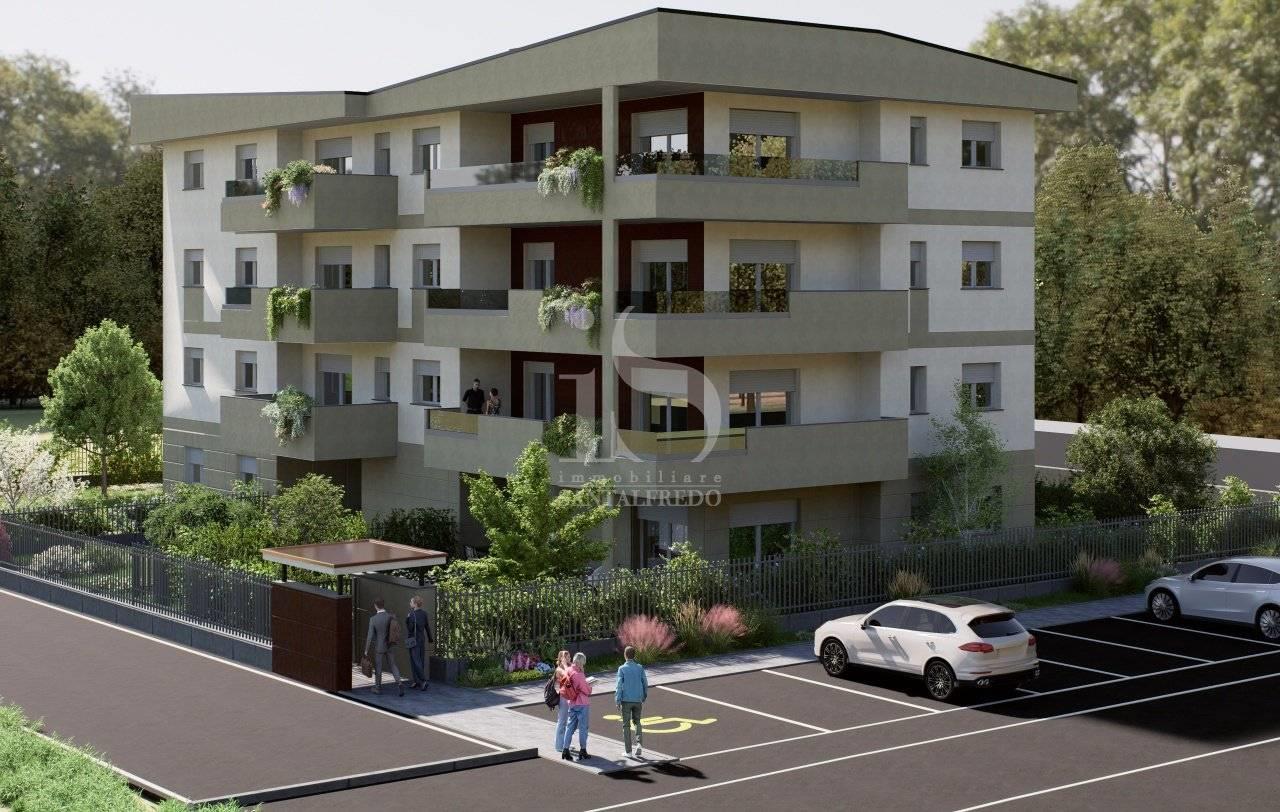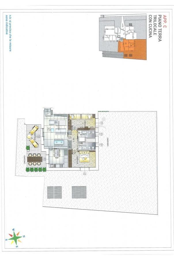 L'appartamento C si trova al piano terra della nuova residenza San Pio X e si distingue per la proporzione equilibrata tra superficie interna e spazi esterni.