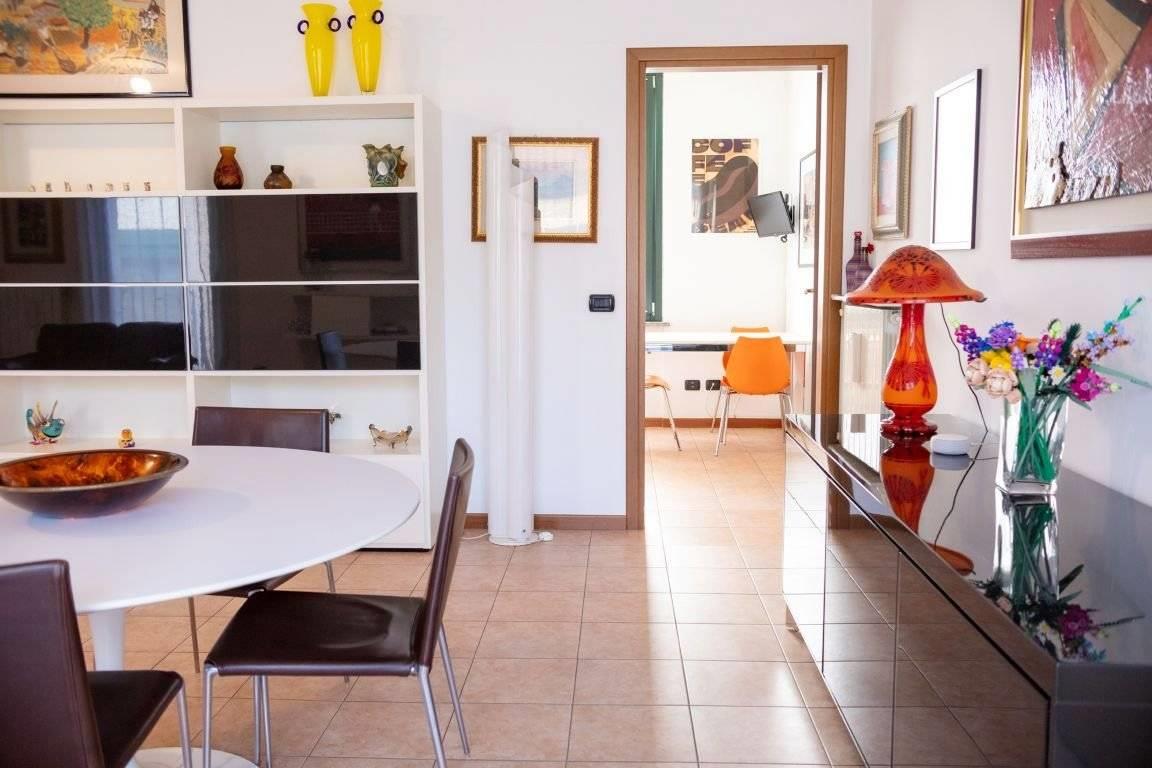 Posto al piano primo con ascensore e doppia esposizione, di 134 MQ: entrando la vista si apre sul grande e luminoso living con balcone, che ben permette di essere diviso tra zona televisione e sala da pranzo, per poter accogliere anche numerosi ospiti; adiacente la cucina abitabile con accesso al locale lavanderia.