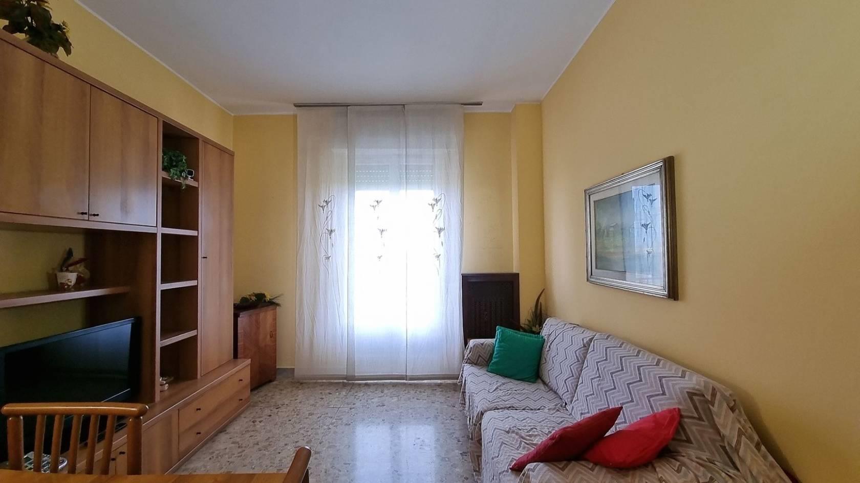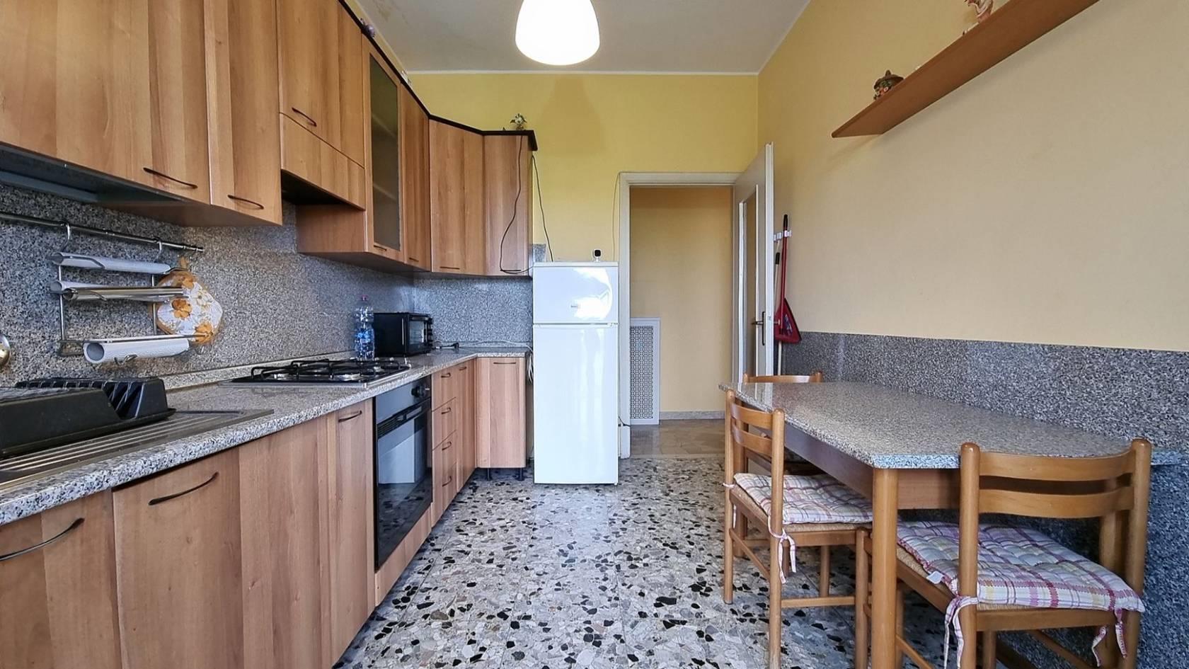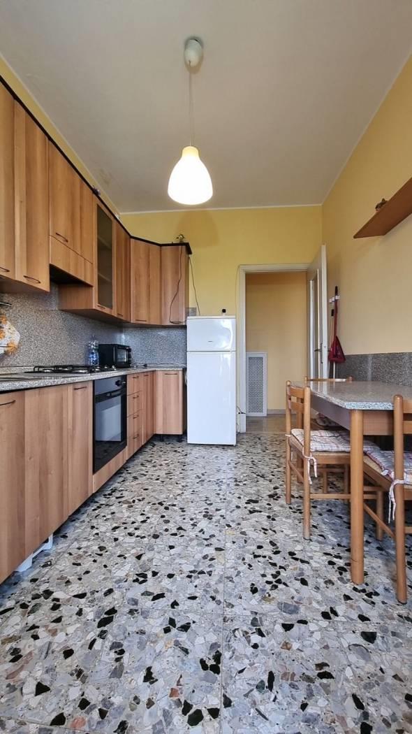 Rif. 2976DZ- In contesto ben tenuto e servito da ascensore, Ampio Appartamento di DUE LOCALI di circa 60 mq, posto al sesto piano, caratterizzato da una piacevole doppia esposizione e da ambienti luminosi e ben distribuiti. L’ingresso si apre su un comodo corridoio che introduce alla Cucina Abitabile e al Soggiorno, entrambi ambienti distinti e funzionali con accesso diretto al Balcone, la zona notte, ben disimpegnata, ospita una spaziosa Camera da Letto matrimoniale e un Bagno finestrato recentemente ristrutturato, servito da doccia. Completa la proprietà una Cantina di circa 7,25 mq, situata al piano interrato, ideale come spazio di deposito aggiuntivo L’appartamento si presenta in buono stato con finiture perlopiu’ originali, pavimentazione realizzata in palladiana di marmo, ad eccezione del bagno rifinito in ceramica, infissi sono realizzati con struttura in legno smaltato con vetro, avvolgibili in PVC, mentre le porte interne sono in legno pieno. Il riscaldamento è centralizzato e regolato da termovalvole con contabilizzatori, per la regolazione e la contabilizzazione del consumo garantendo un’ottimale gestione dei consumi.
